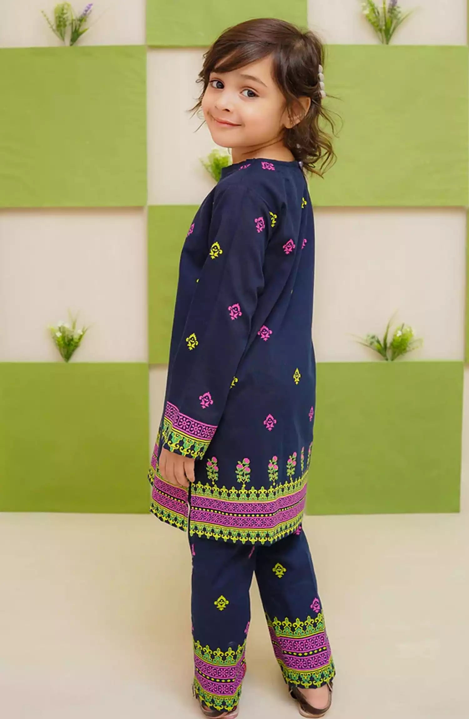 Bottom: Navy Blue Cotton Trouser with Print