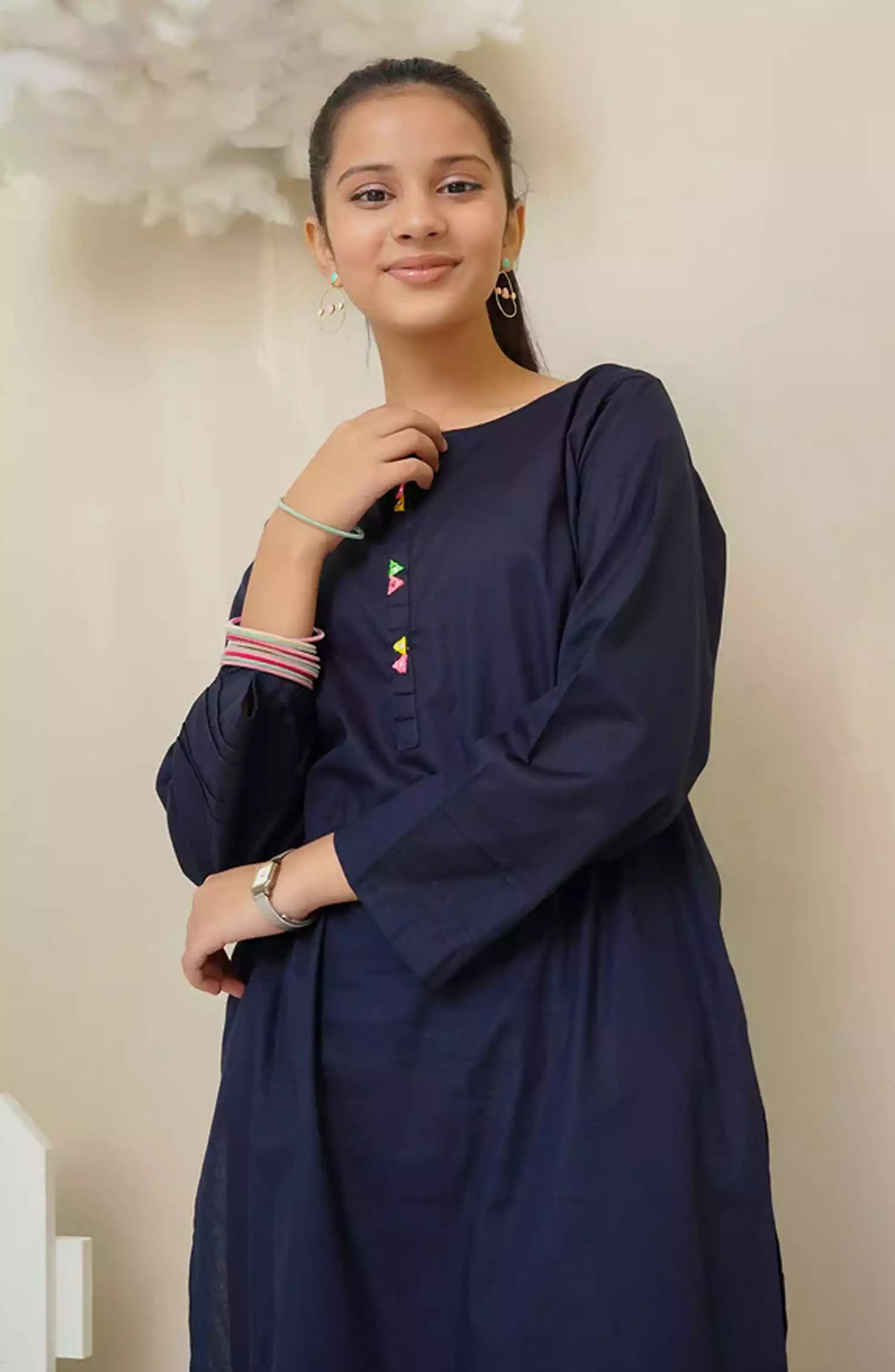 Bottom: Navy Blue Cotton Shalwar