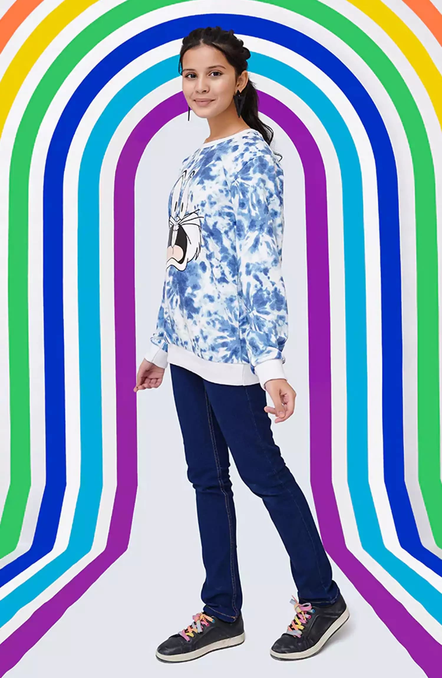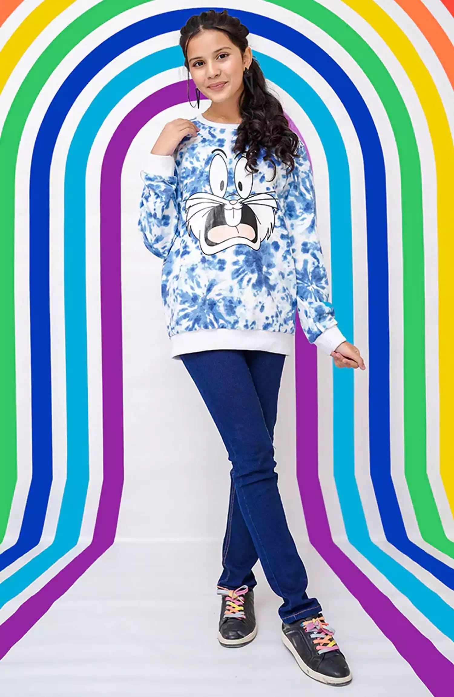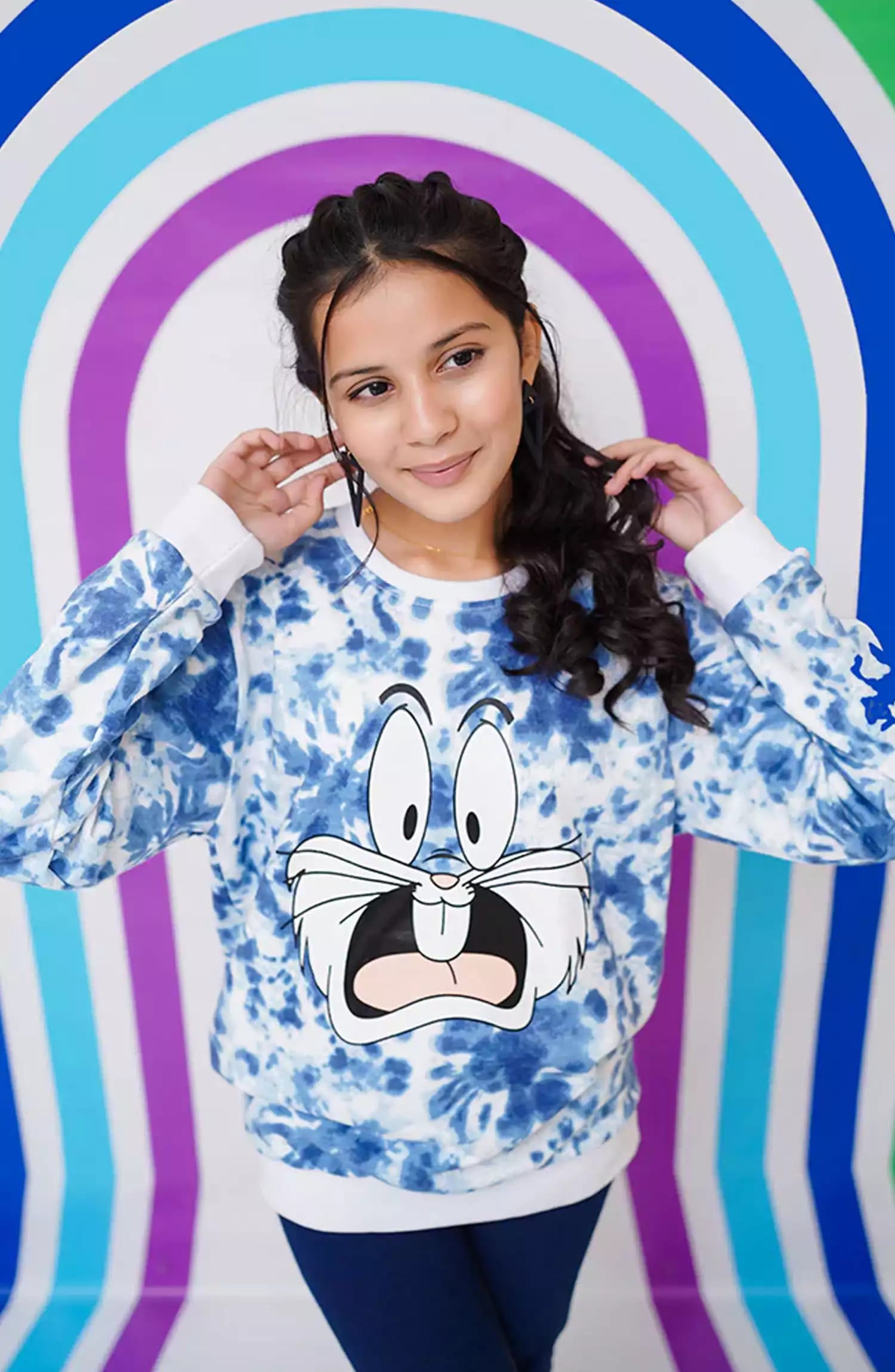 Top: Blue Tie & Dye Terry SweatShirt with Print