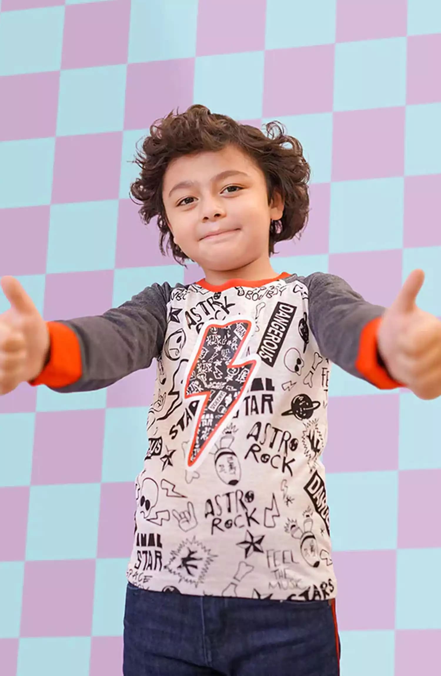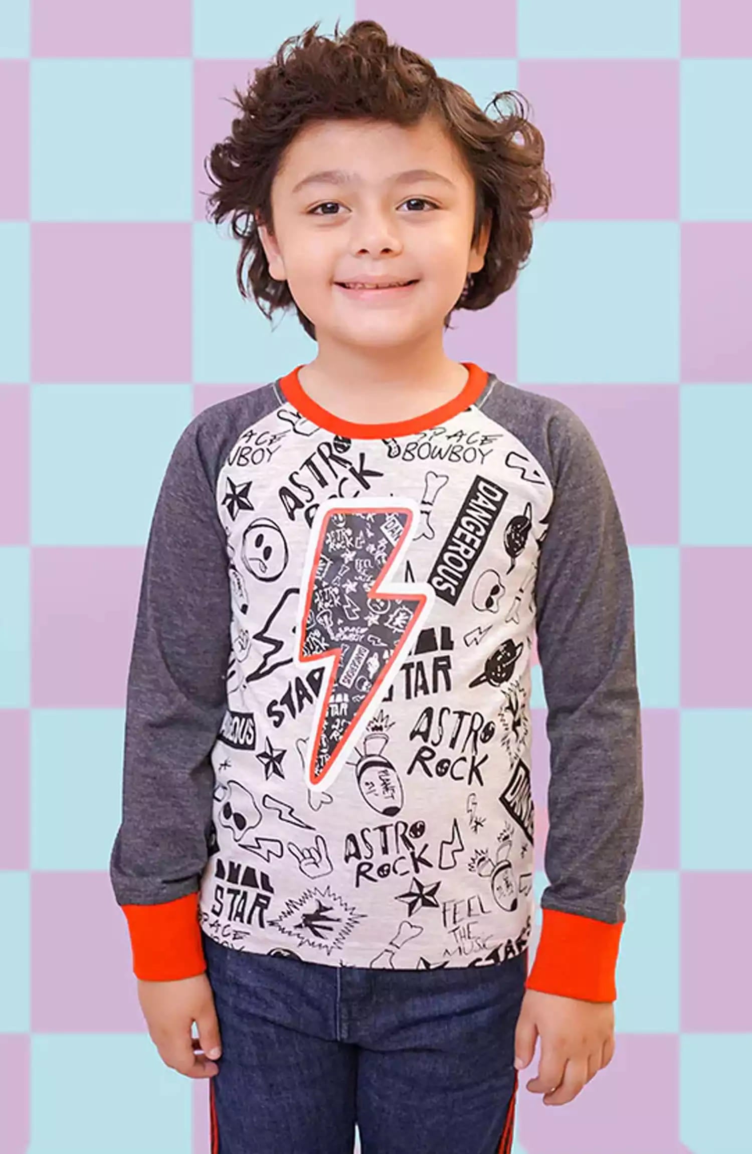 Top: Oatmeal 100% Cotton Stretch Jersey with Print