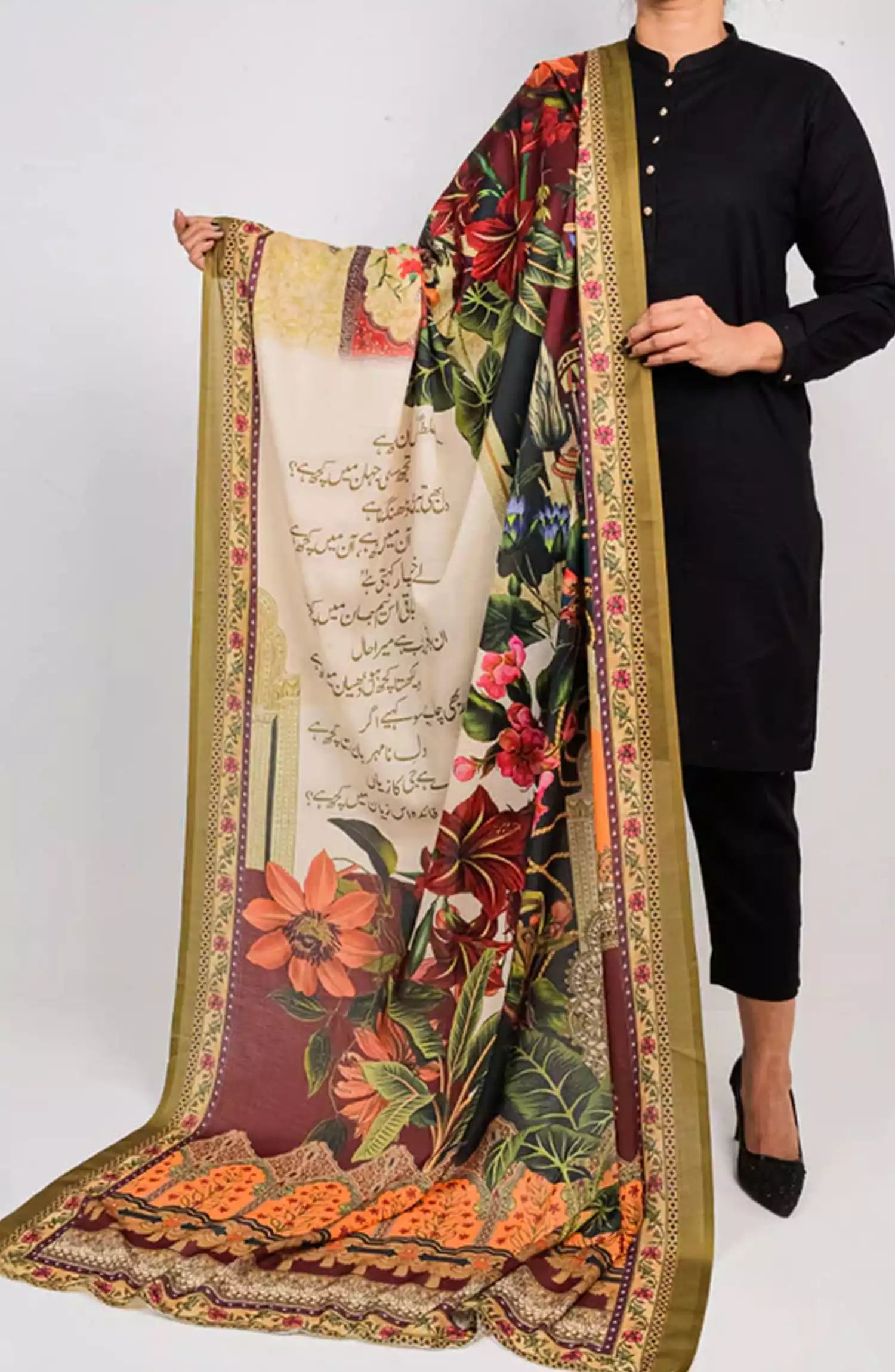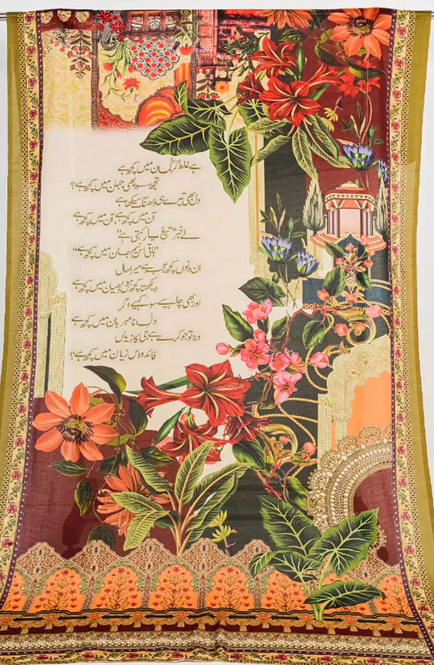 Description : As South Asia has best of Urdu Poets. One of Them is Khwaja Mir Dard. and We are Going to Tribute Khwaja Mir Dard. By writing His well-known Poetry Which Comes Under the Love, Sad, Friendship, Bewafai, Heart Broken Category of Urdu Ghazal. With Floral Print and Beautiful Border Line.