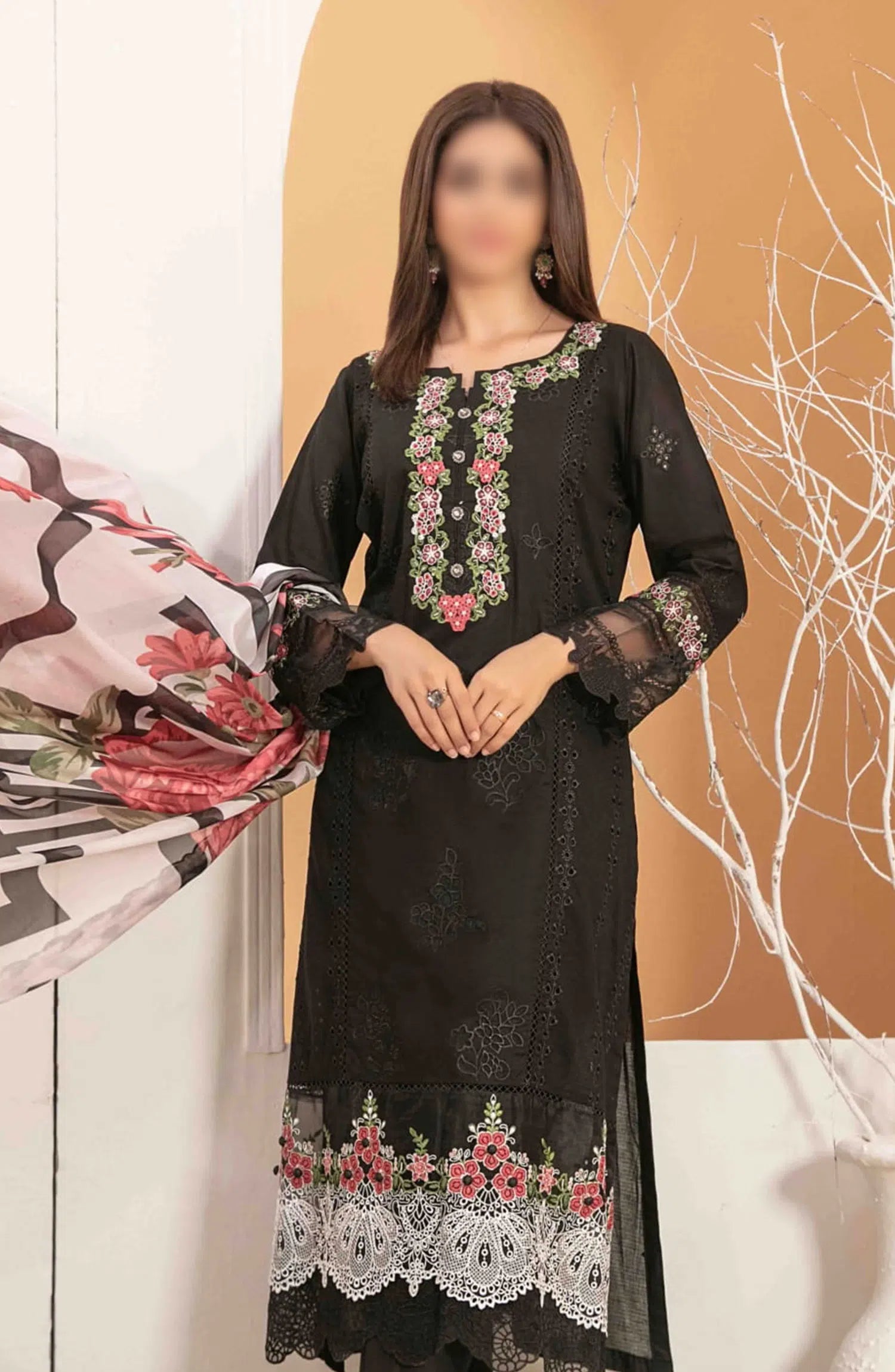 Rua by Casual Lite Embroidered Premium Linen Stitched 3 Piece Suit - D-03 Shadow Bloom - CL25RU - Black - Winter Collection