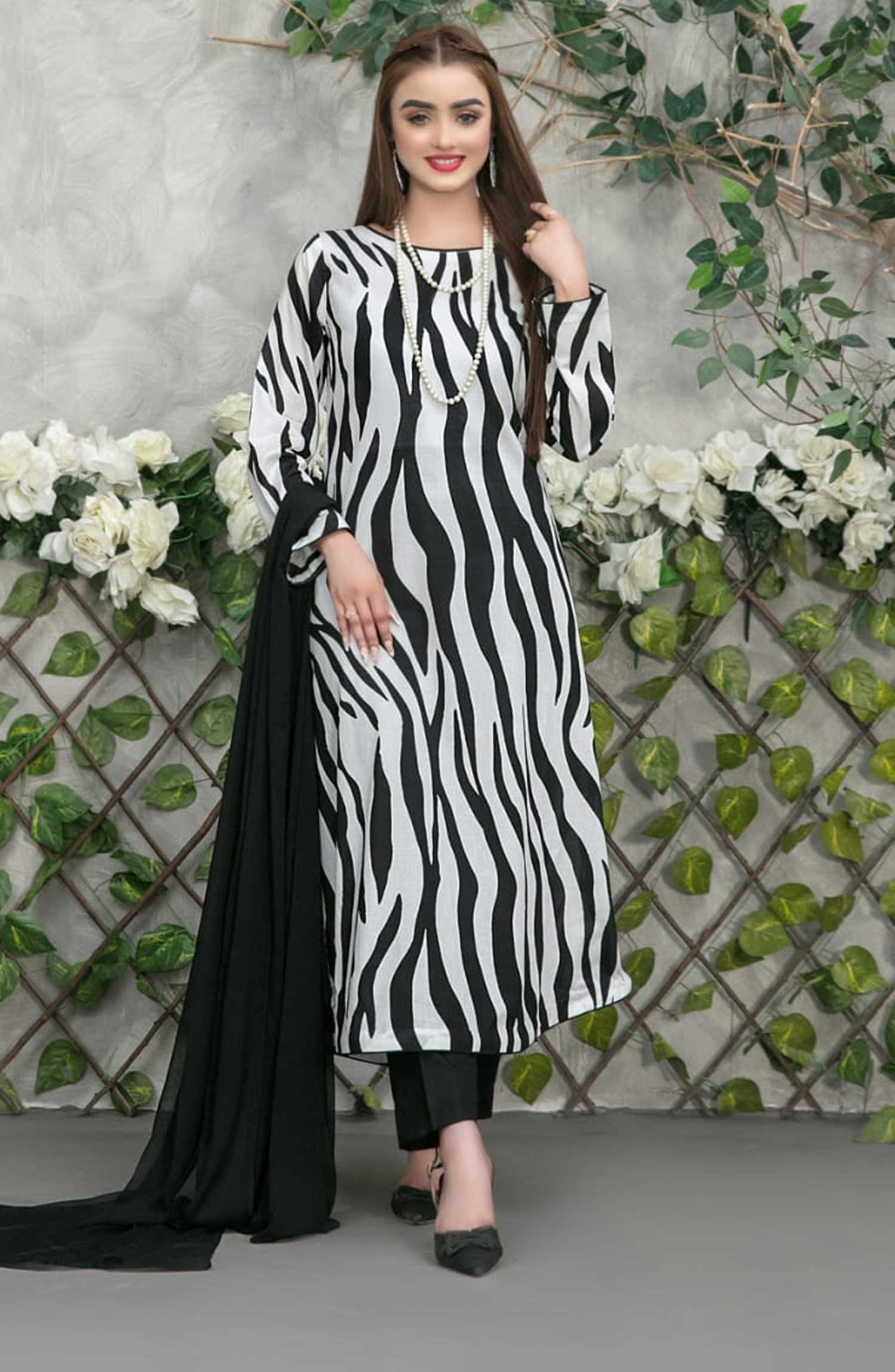 The standard style comes as a long-sleeved kameez with dupatta and trouser/shawlar.