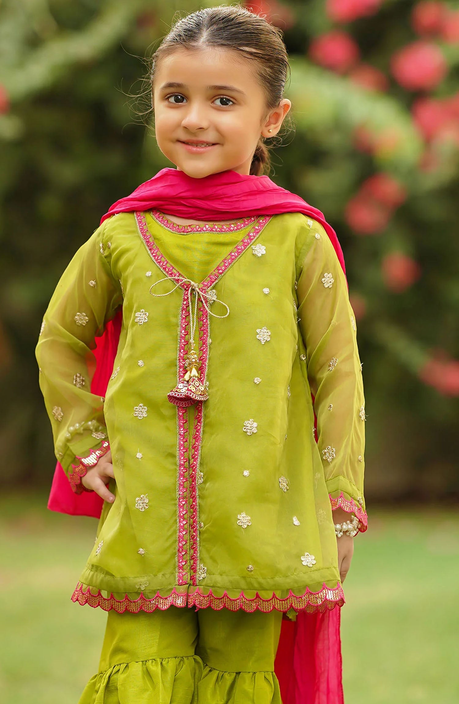 Bottom: Lime Green Raw Silk Gharara Pants With Embroidery
