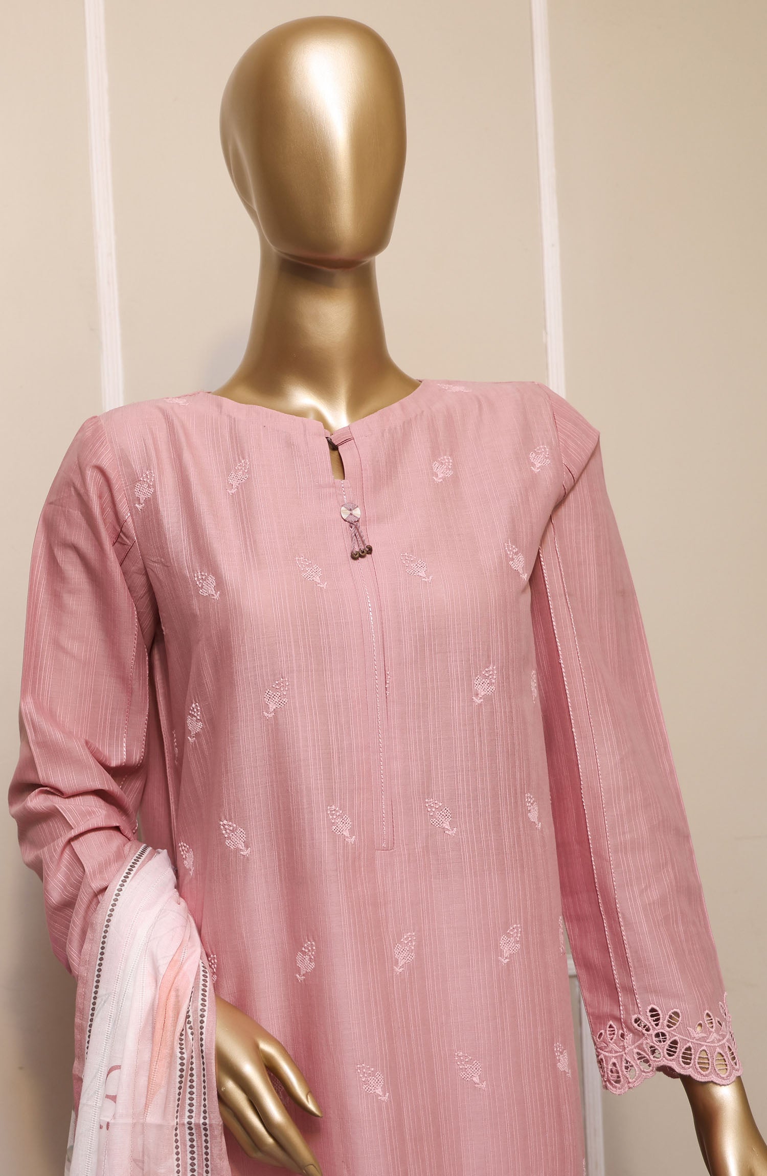 Modest Embroidered Raw Silk Stitched 3 Piece Suit - 9975-Pnk - MOD25PRF - Pink - Festive Girls Collection