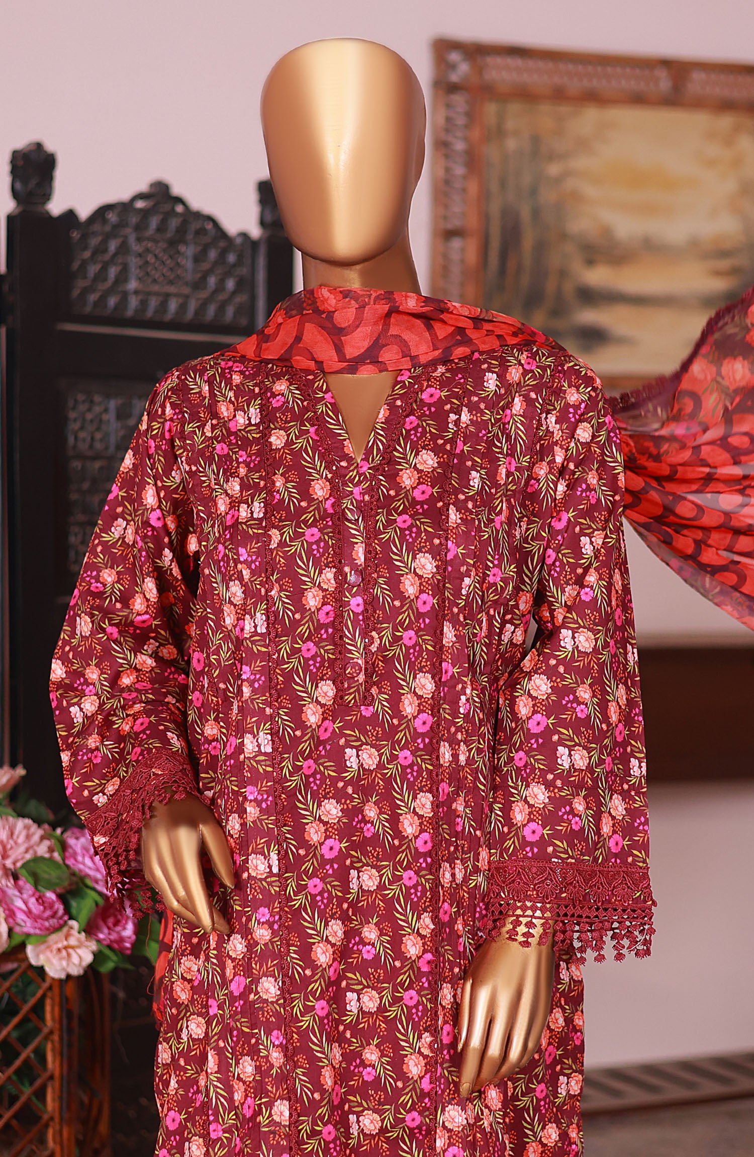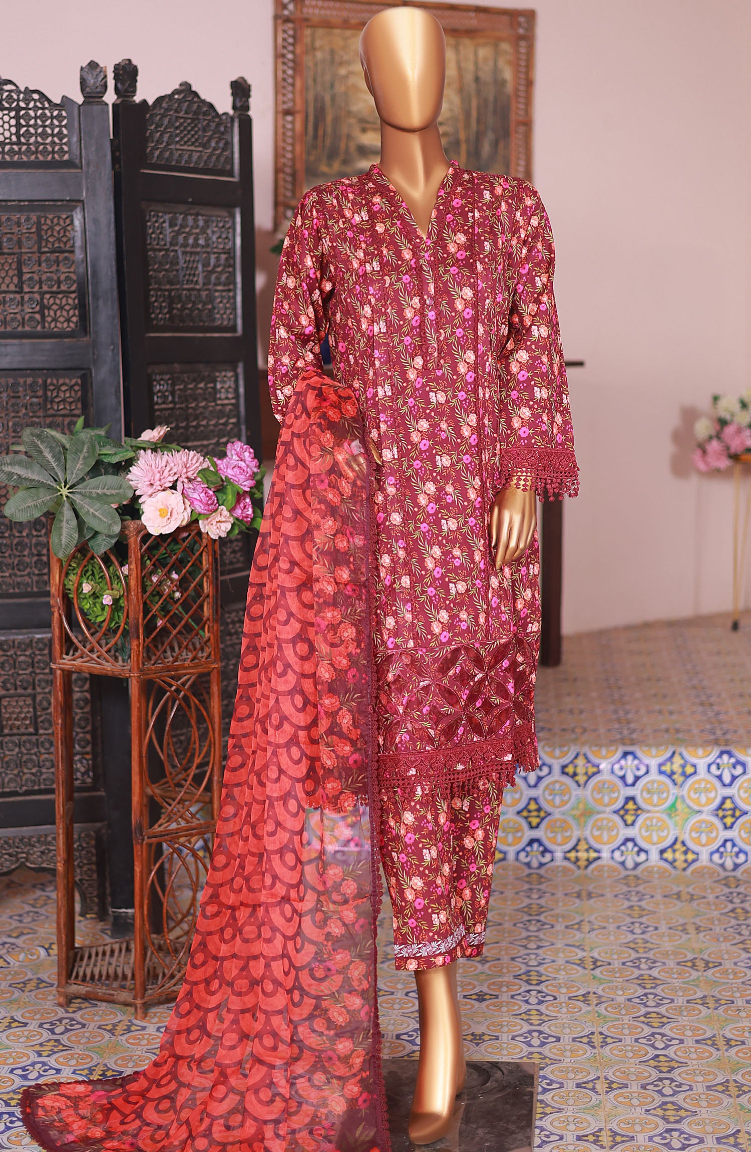 Home Oswah by Suntex Embroidered Lawn Stitched 3 Piece Suit - OS-2519K - SS25OLC - Red - Summer Collection
