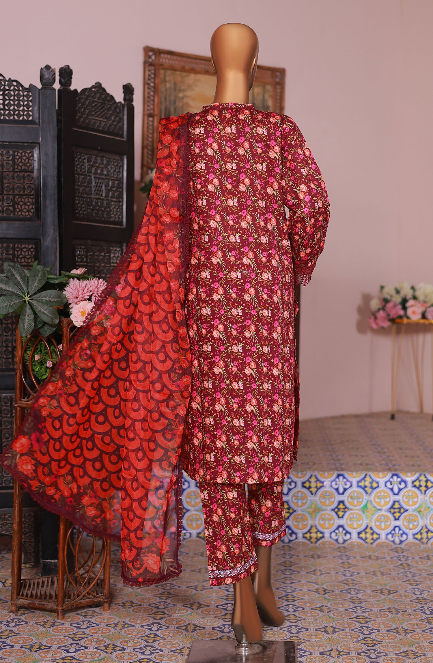 Oswah by Suntex Embroidered Lawn Stitched 3 Piece Suit - OS-2519K - SS25OLC - Red - Summer Collection
