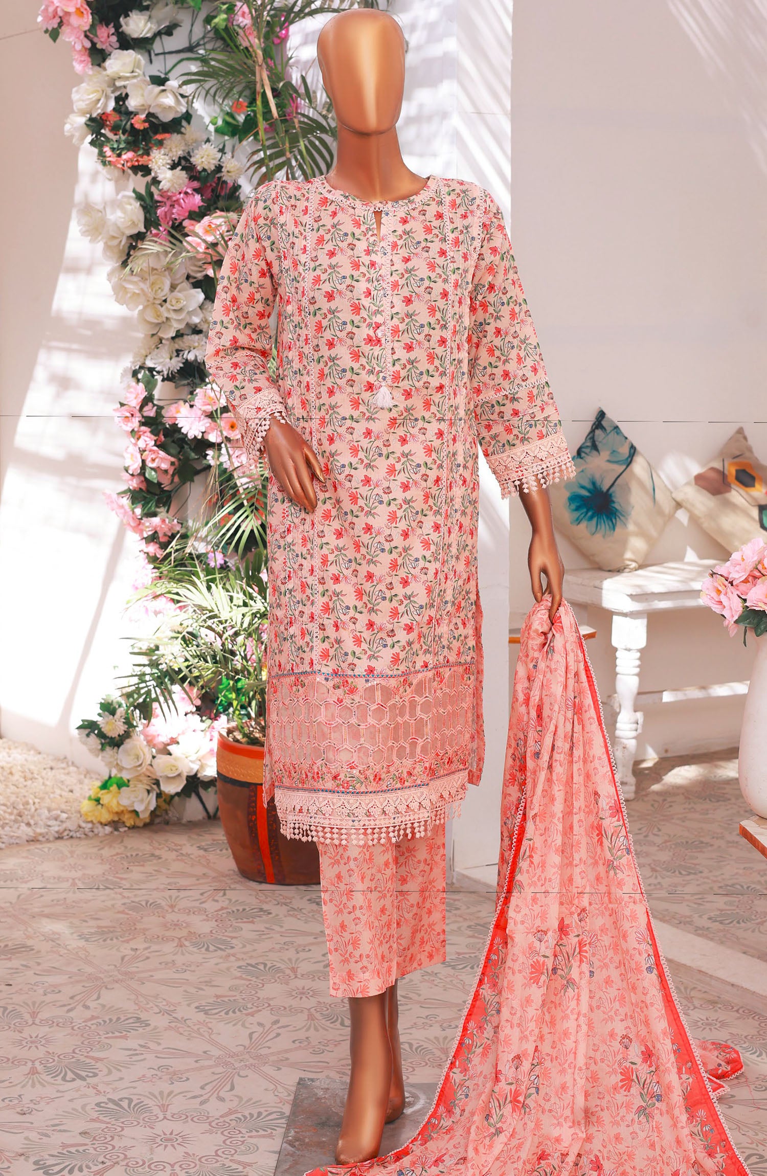Home Oswah by Suntex Fabrics Printed Stitched 3 Piece Suit - OS- 2508 K - SS25O - Peach - Summer Collection