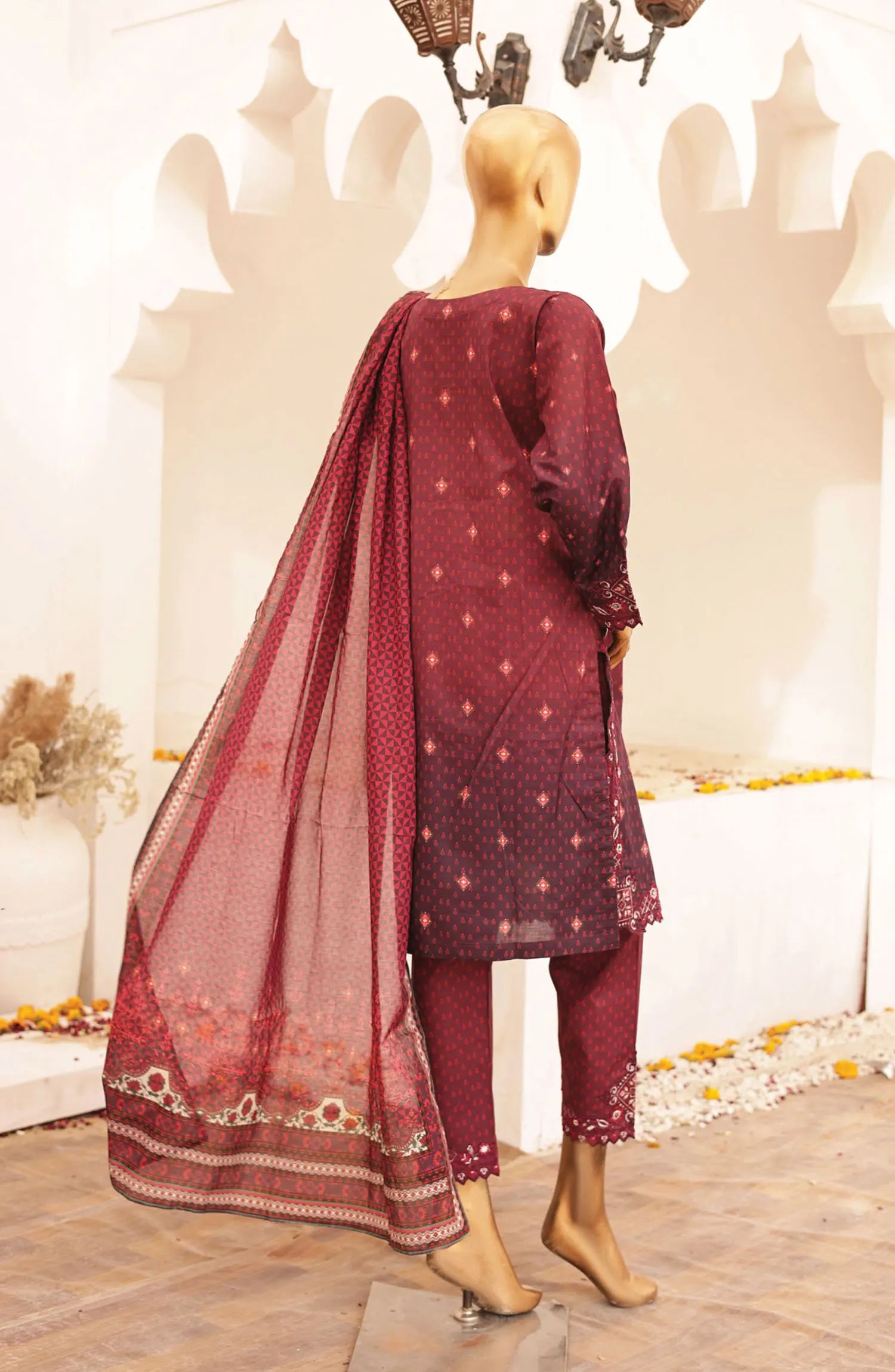 Oswah Women Summer Embroidered Lawn Collection Vol 02 has been styled in the image for photography and illustrative purposes.