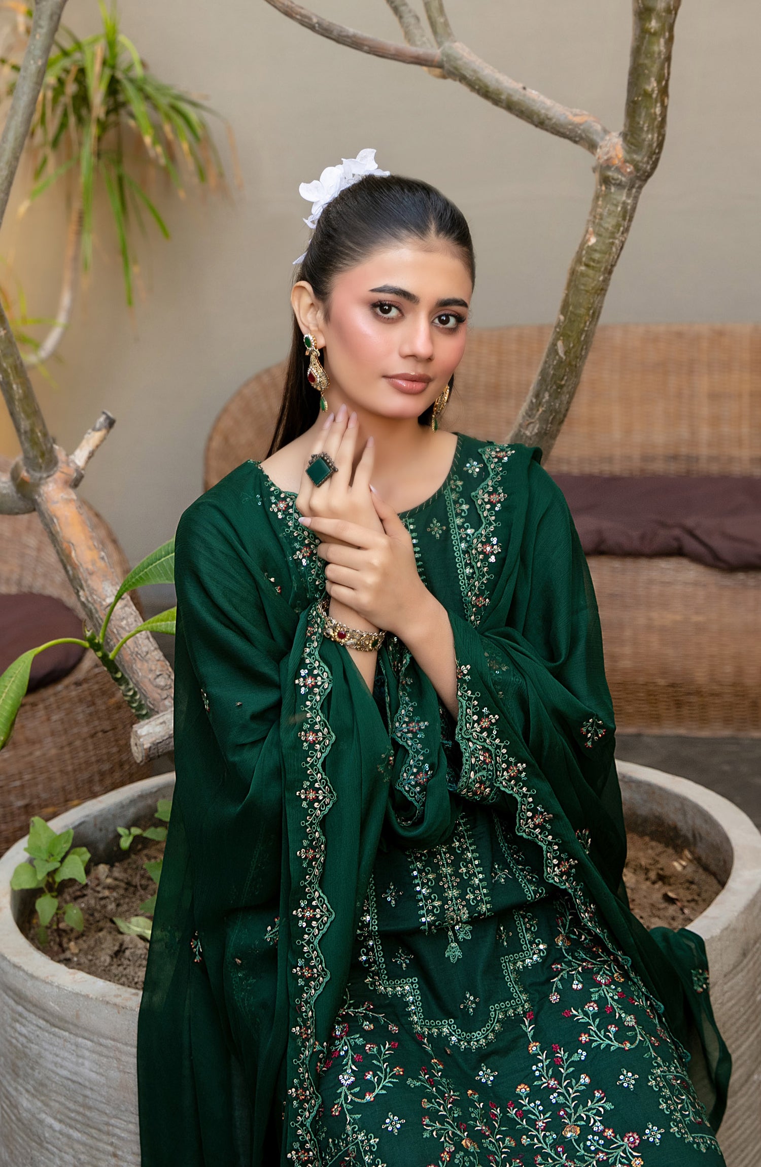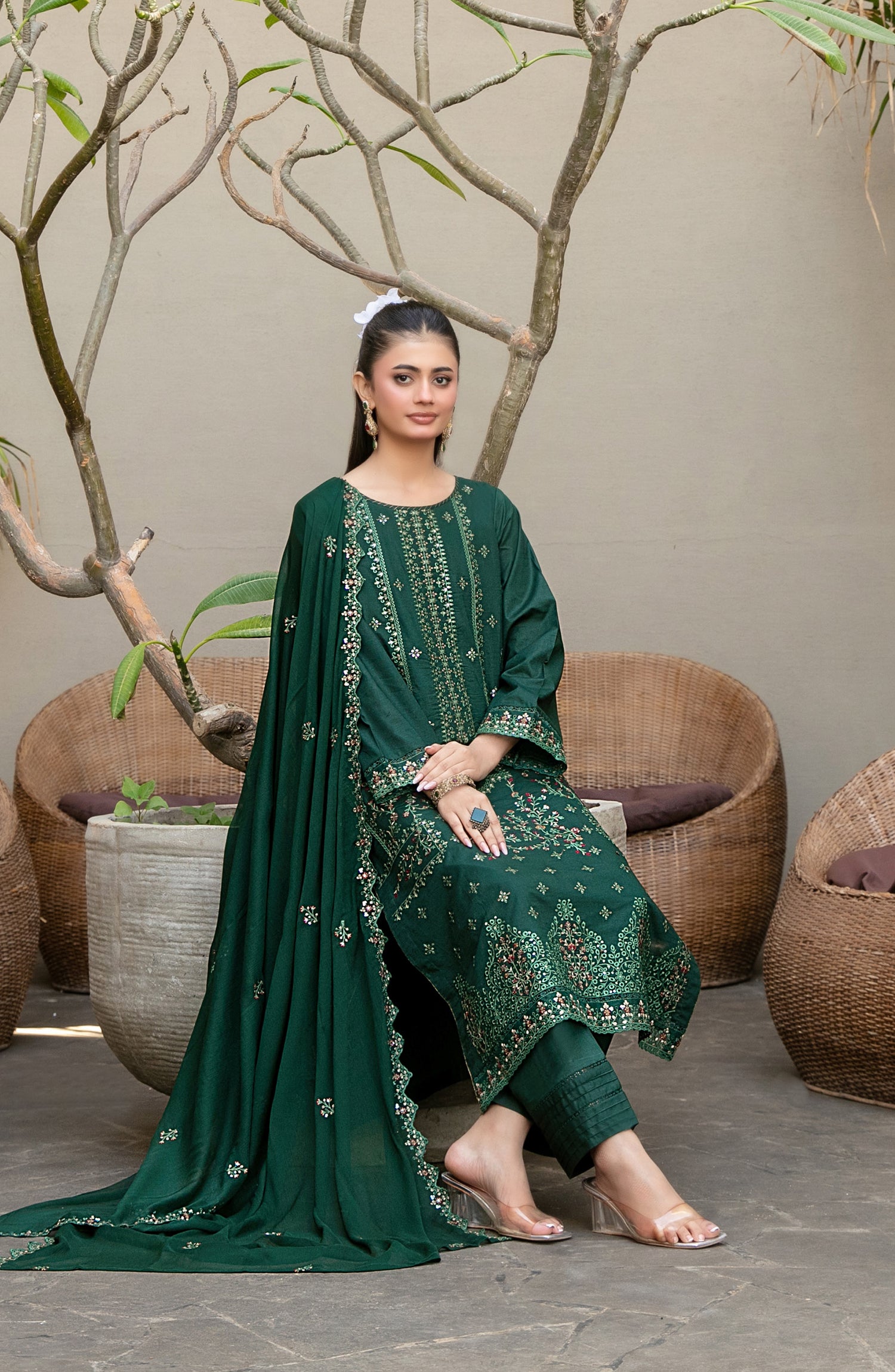 Stitched Exclusive Embroidered Lawn Shirt Designs with Embroidered Chiffon Dupatta & Stitched Plain Cotton Trouser