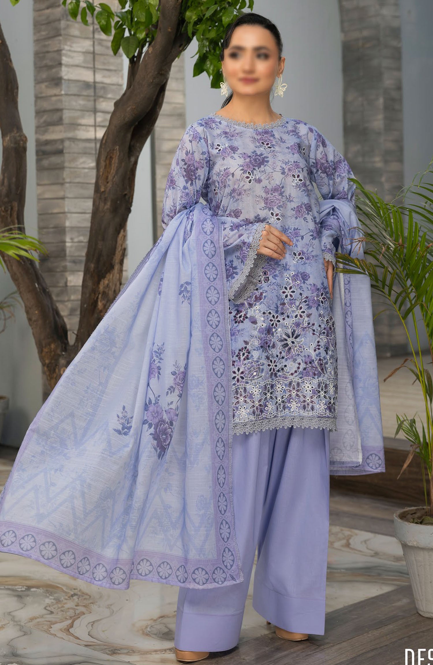 Home Parisa by Al Karim Embroidered Lawn Unstitched 3 Piece Suit - D-3 - ALK25PELV2 - Purple - Summer Collection