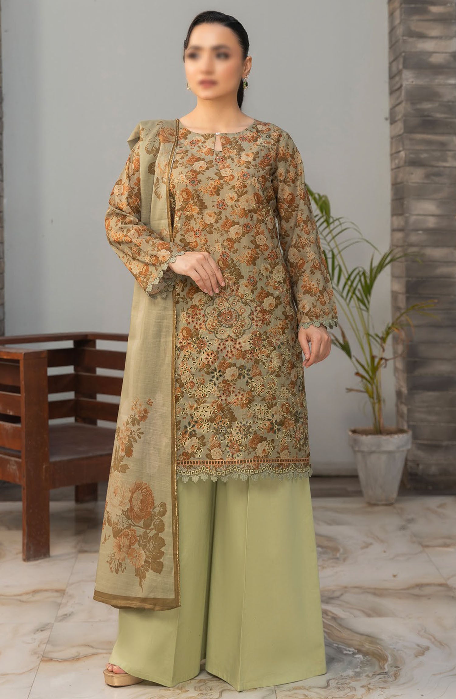 Home Parisa by Al Karim Embroidered Lawn Unstitched 3 Piece Suit - D-4 - ALK25PELV2 - Green - Summer Collection