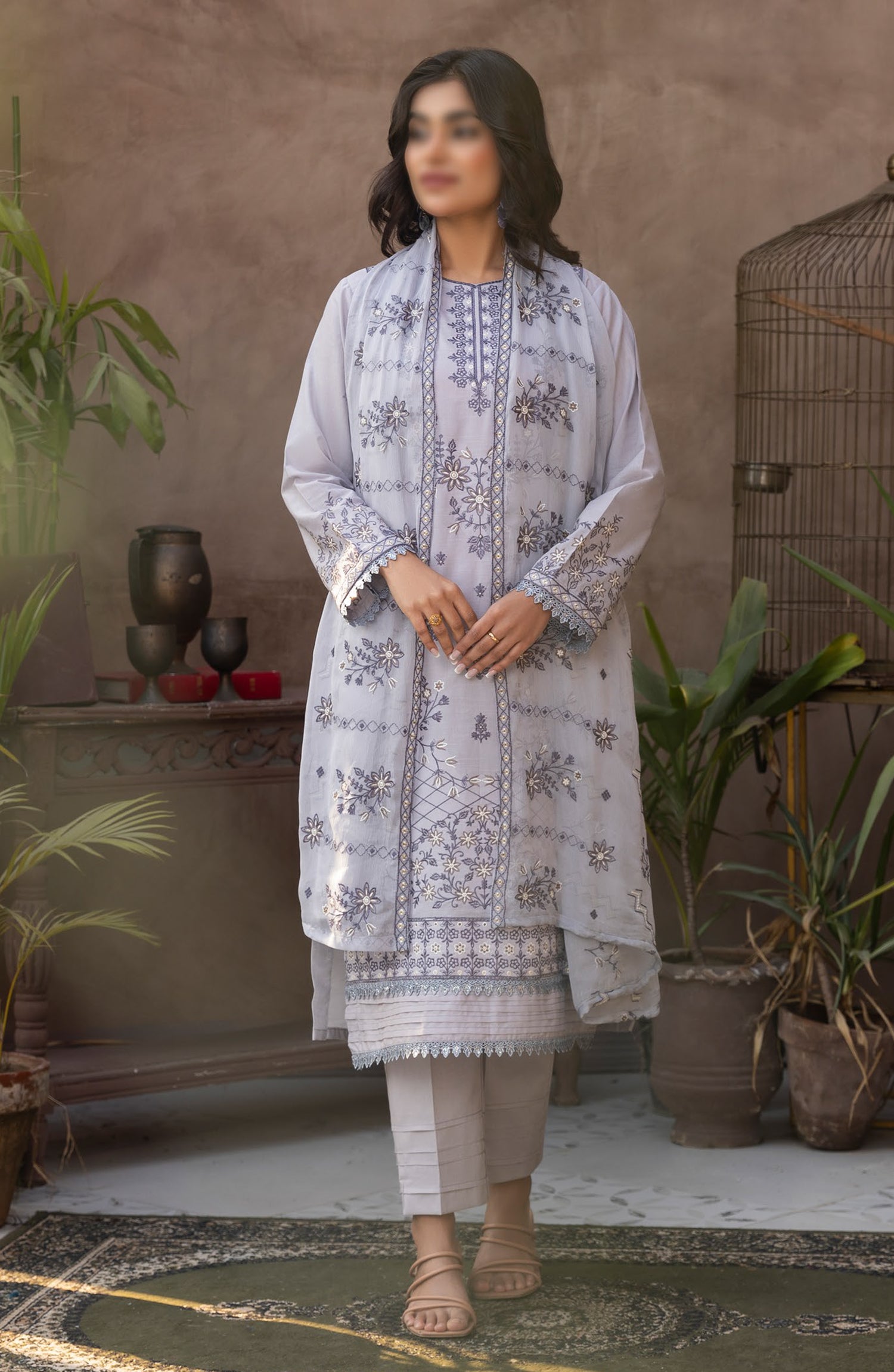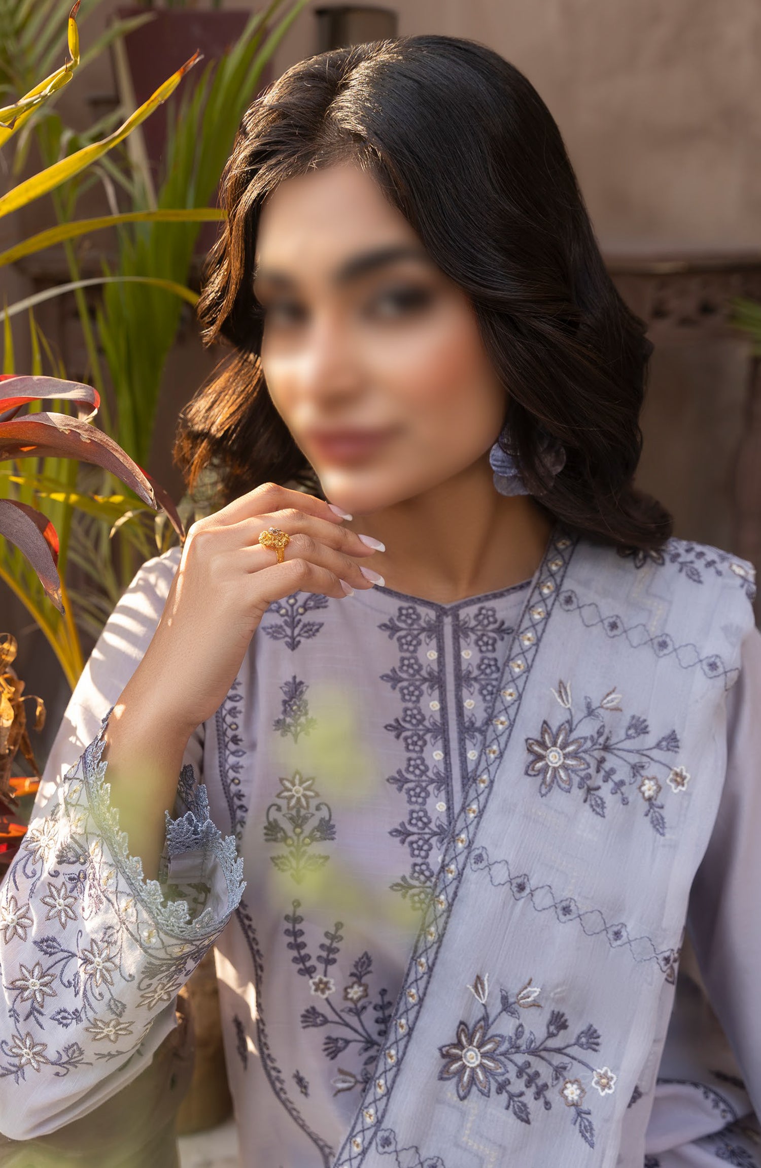 Embroidered Lawn Slub Unstitched 3 Piece Suit with Chiffon Embroidered Dupatta