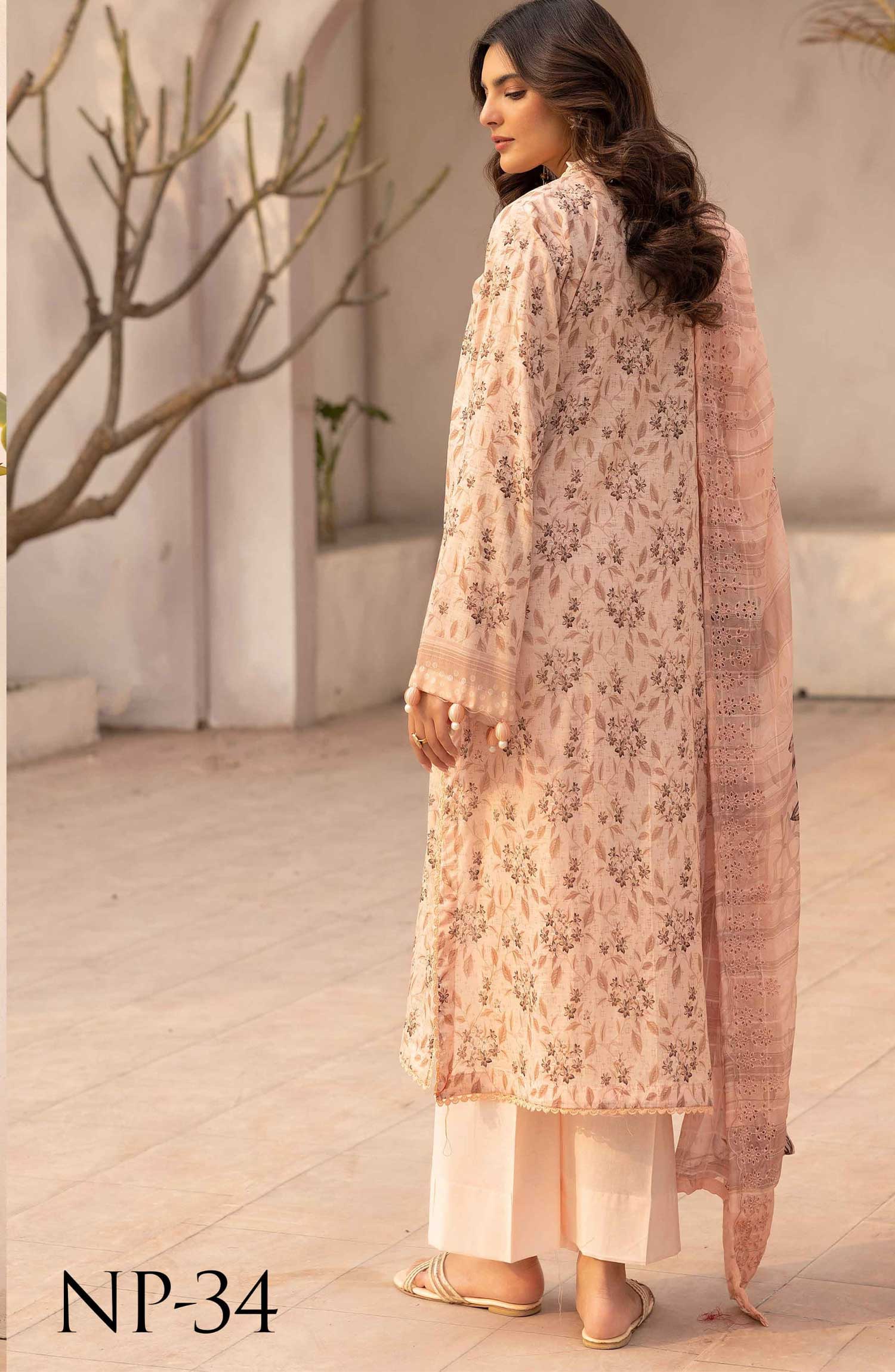Home Pastels by Nur Embroidered Lawn Unstitched 3 Piece Suit - NP-34 - NUR25PL - Peach - Summer Collection