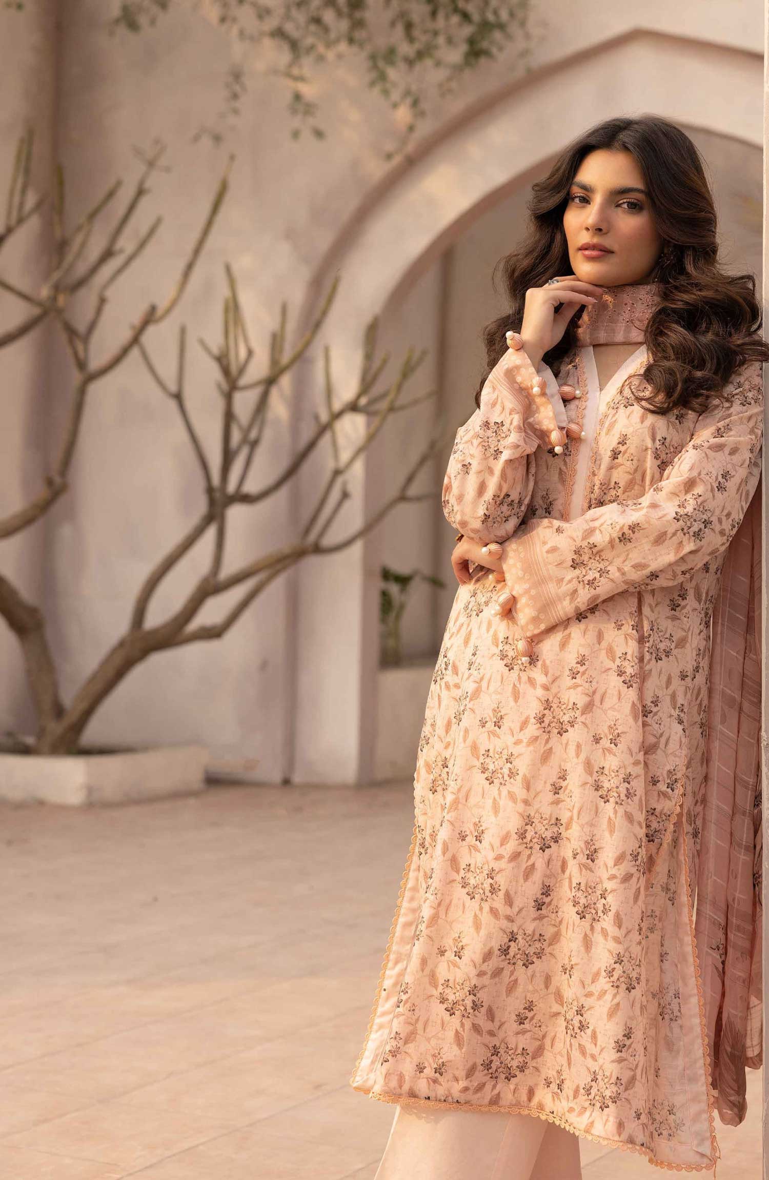 Pastels by Nur Embroidered Lawn Unstitched 3 Piece Suit - NP-34 - NUR25PL - Peach - Summer Collection