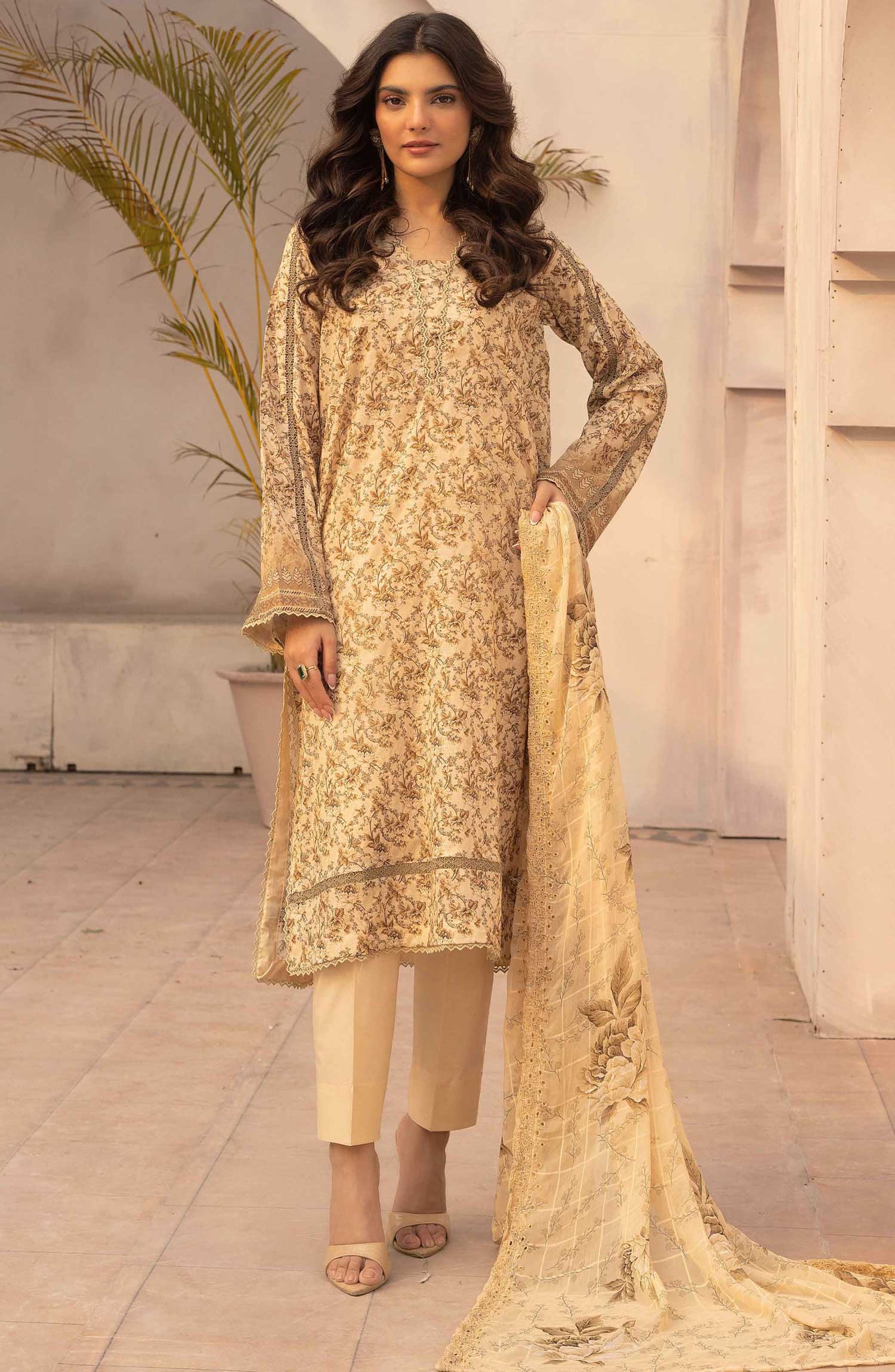 Lamisah by Lavish Premium Afsana Embroidered Chiffon Unstitched 3 Piece Suit - D-07 Pearl Garden - LP25AFS - Fawn - Luxury Collection