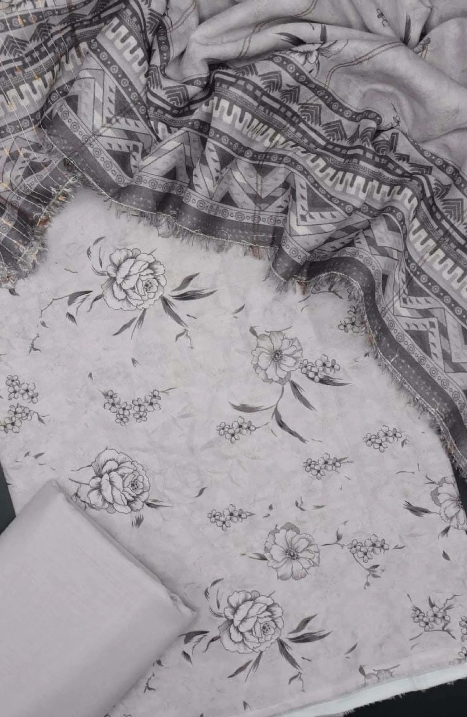 3 Piece Printed Lawn Unstitched Suit With Zari Dupatta