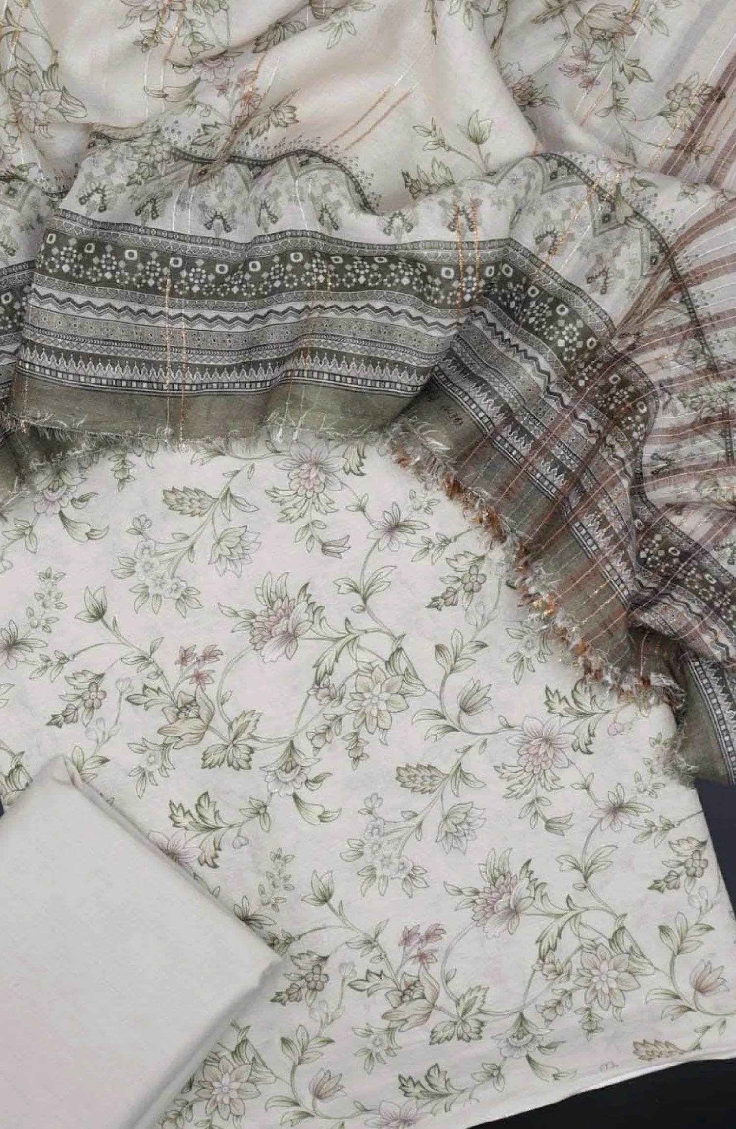 3 Piece Printed Lawn Unstitched Suit With Zari Dupatta