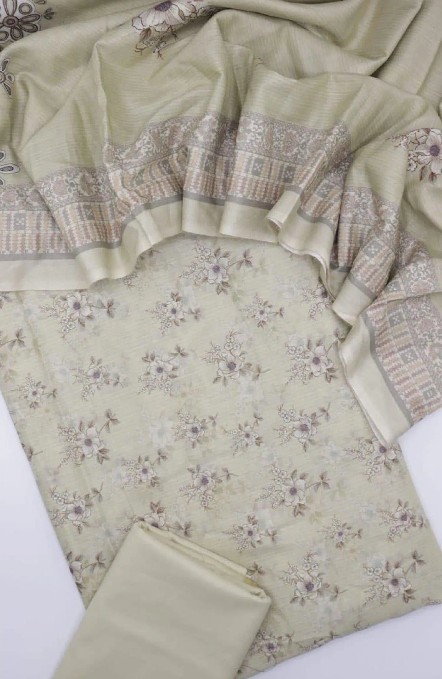 3 Piece Printed Lawn Unstitched Suit With Zari Dupatta