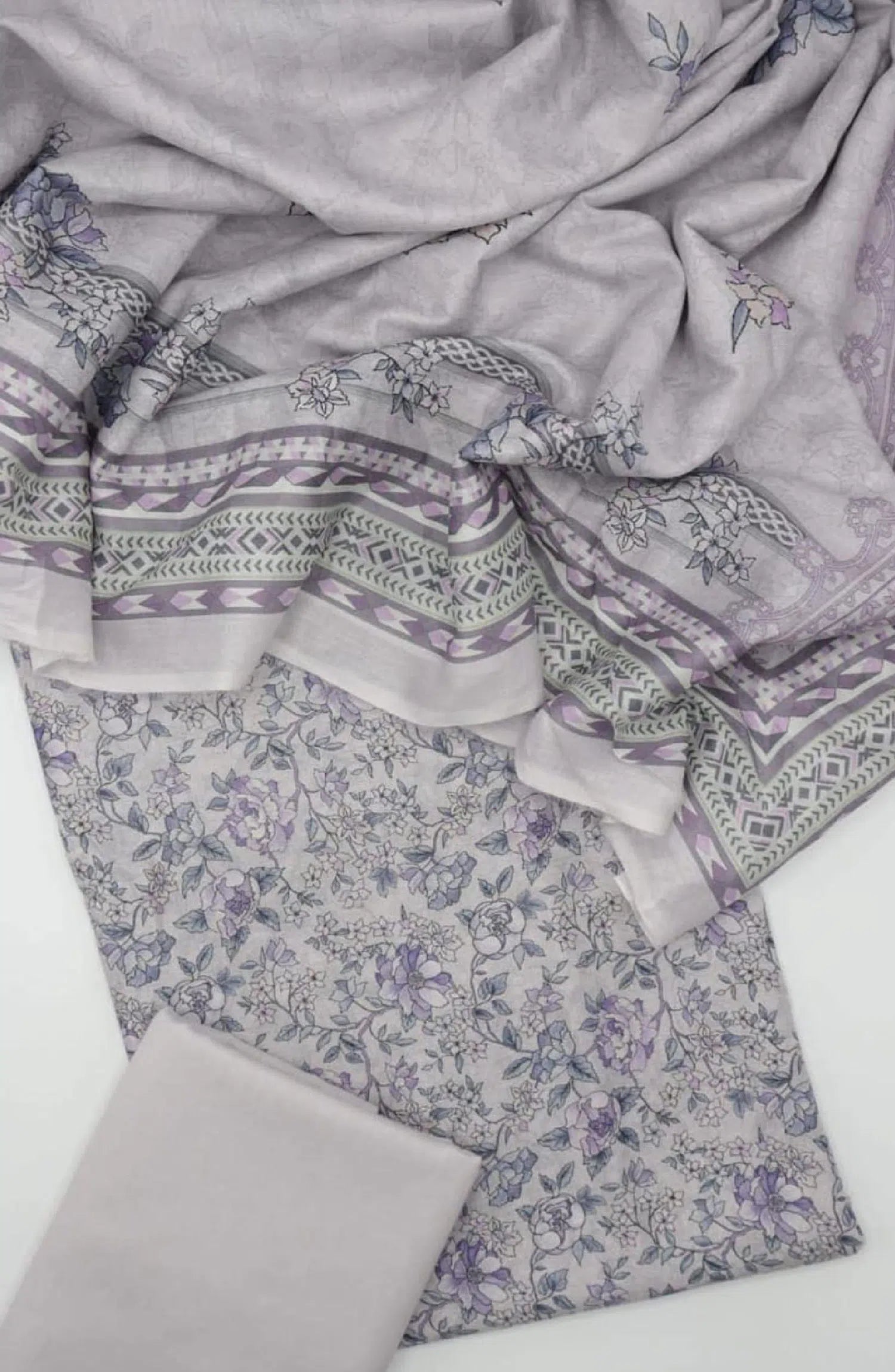 3 Piece Printed Lawn Unstitched Suit With Zari Dupatta