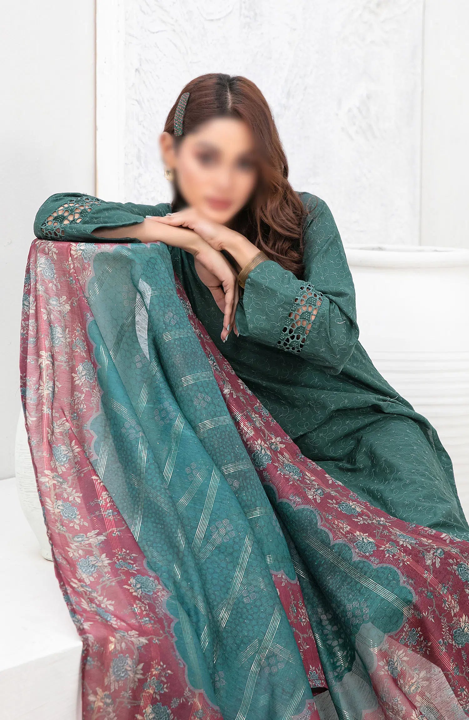 Pegah - Schiffli Lawn Digital Dupatta Collection has been styled in the image for photography and illustrative purposes.