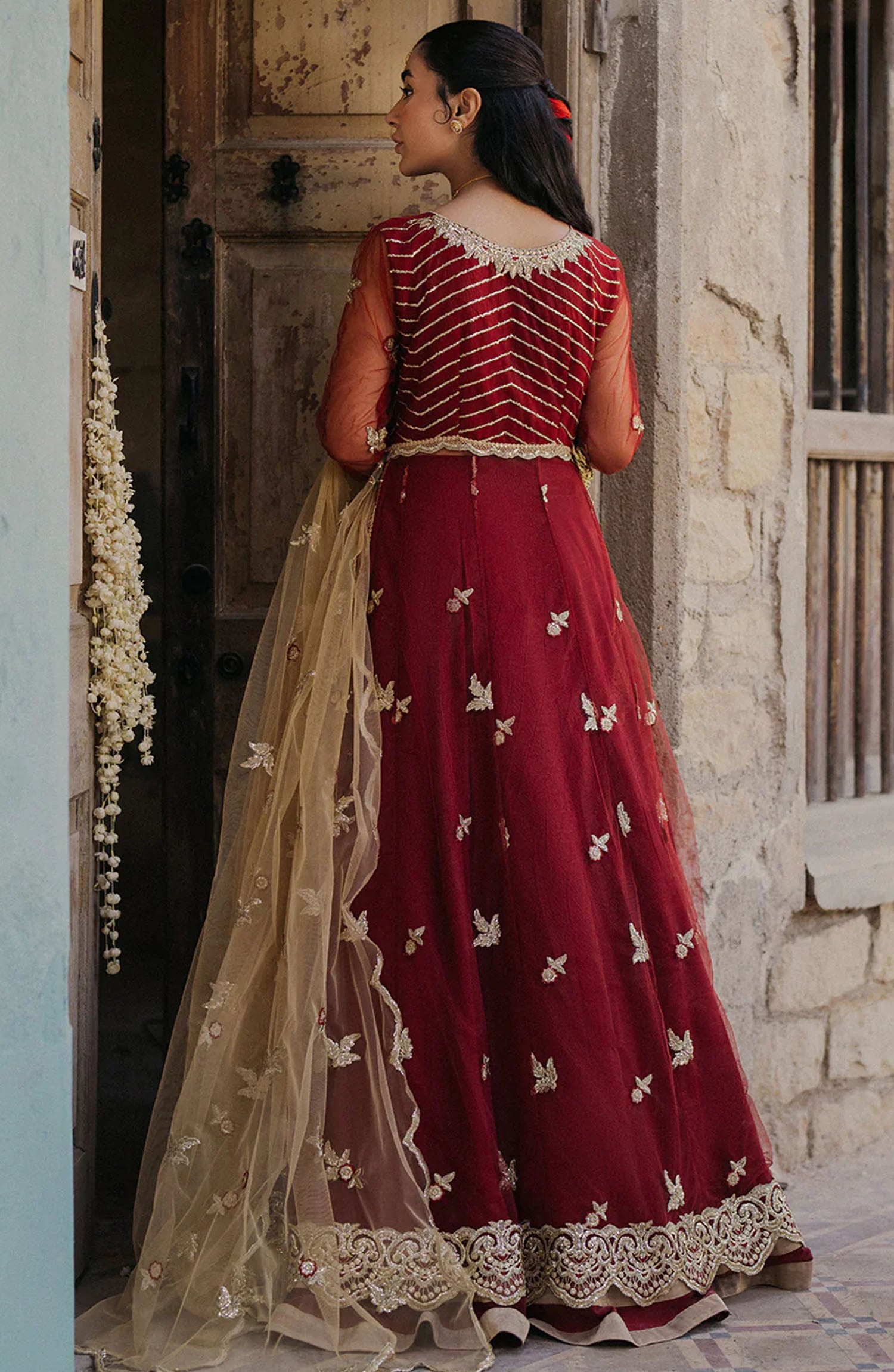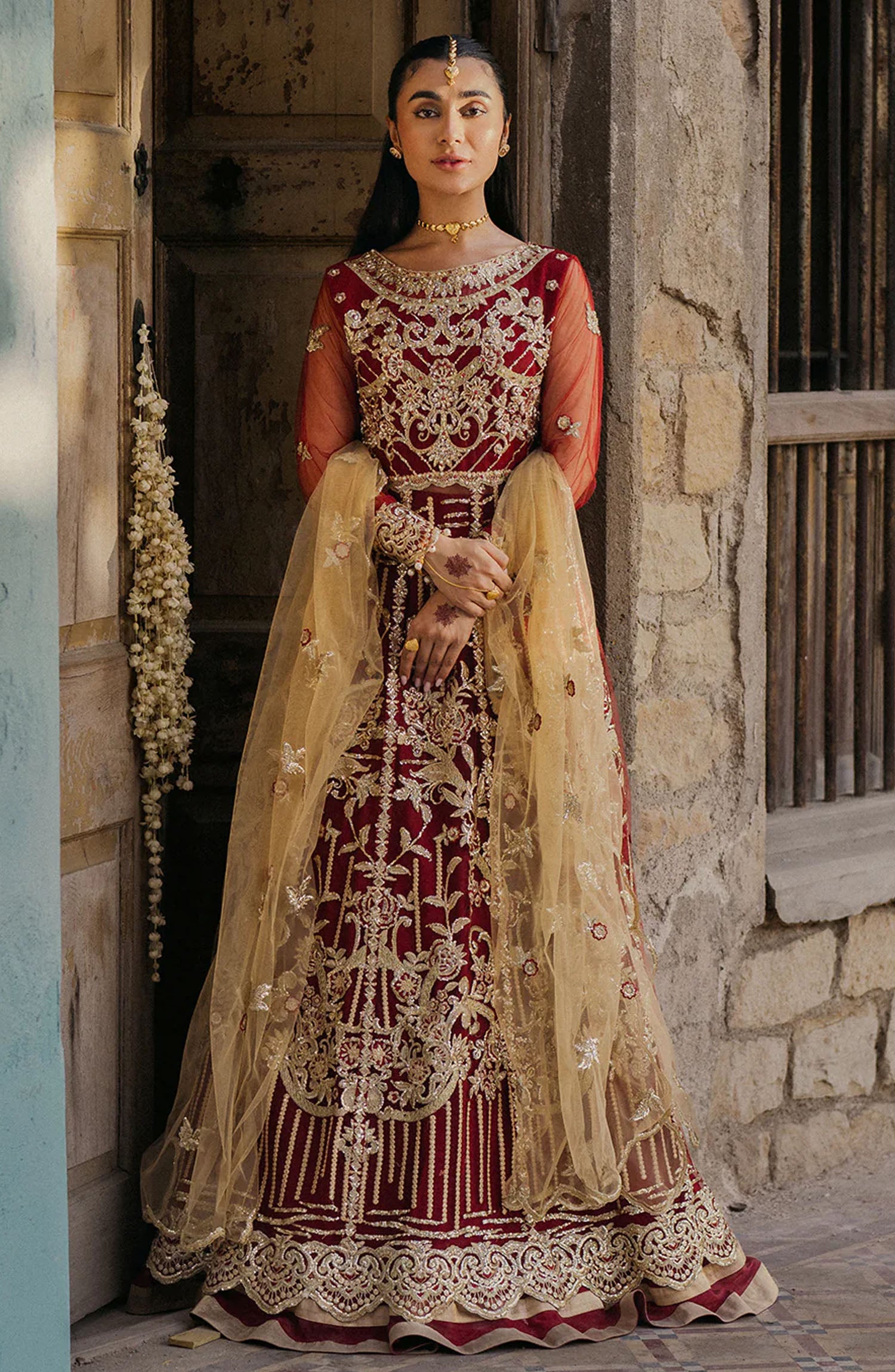 Exclusive Pehli Si Muhabbat Wedding Unstitched By Roheenaz has been styled in the image for photography and illustrative purposes.