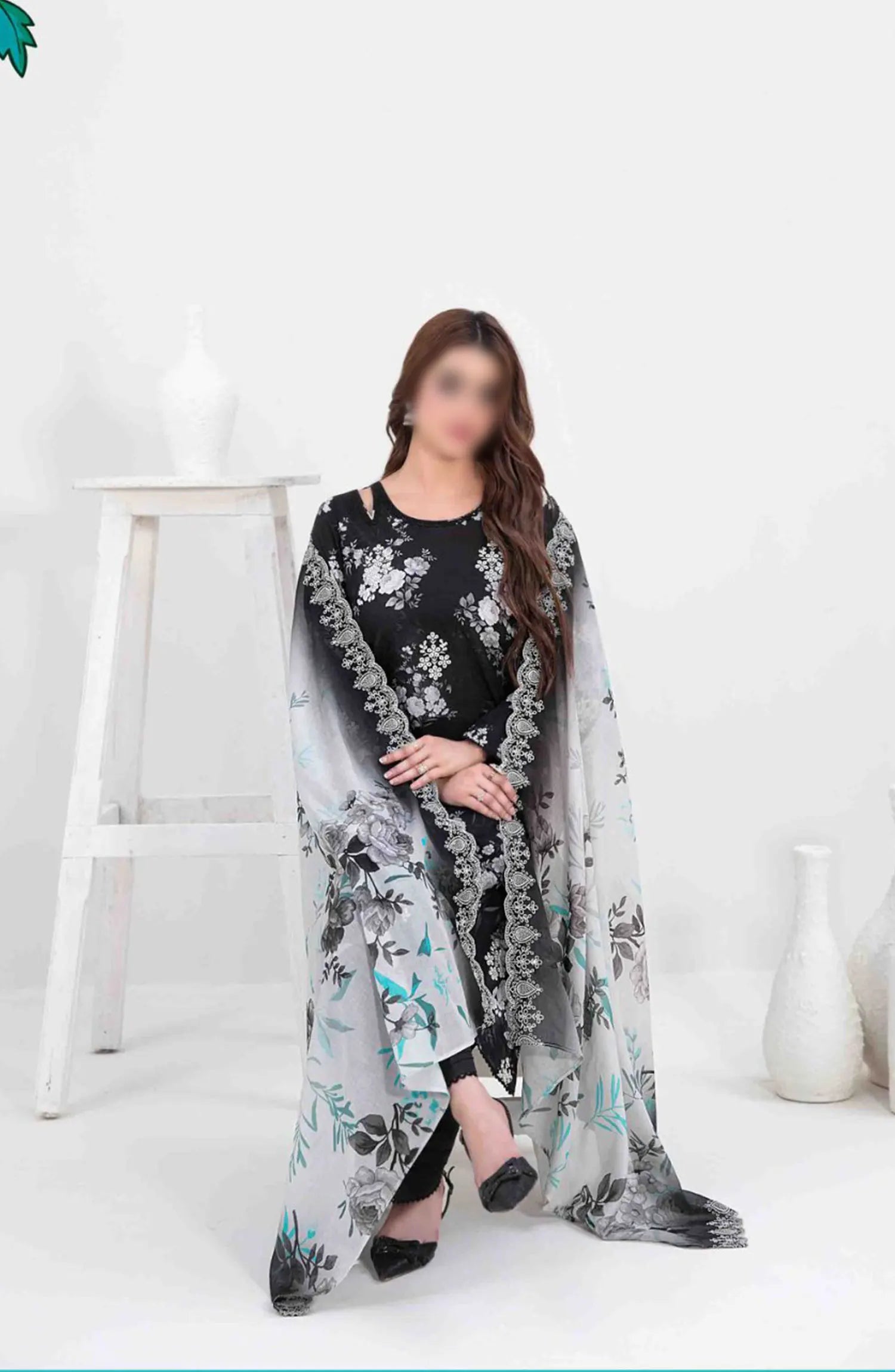 Un-Stitched Embroidered Digital Printed Lawn Shirt