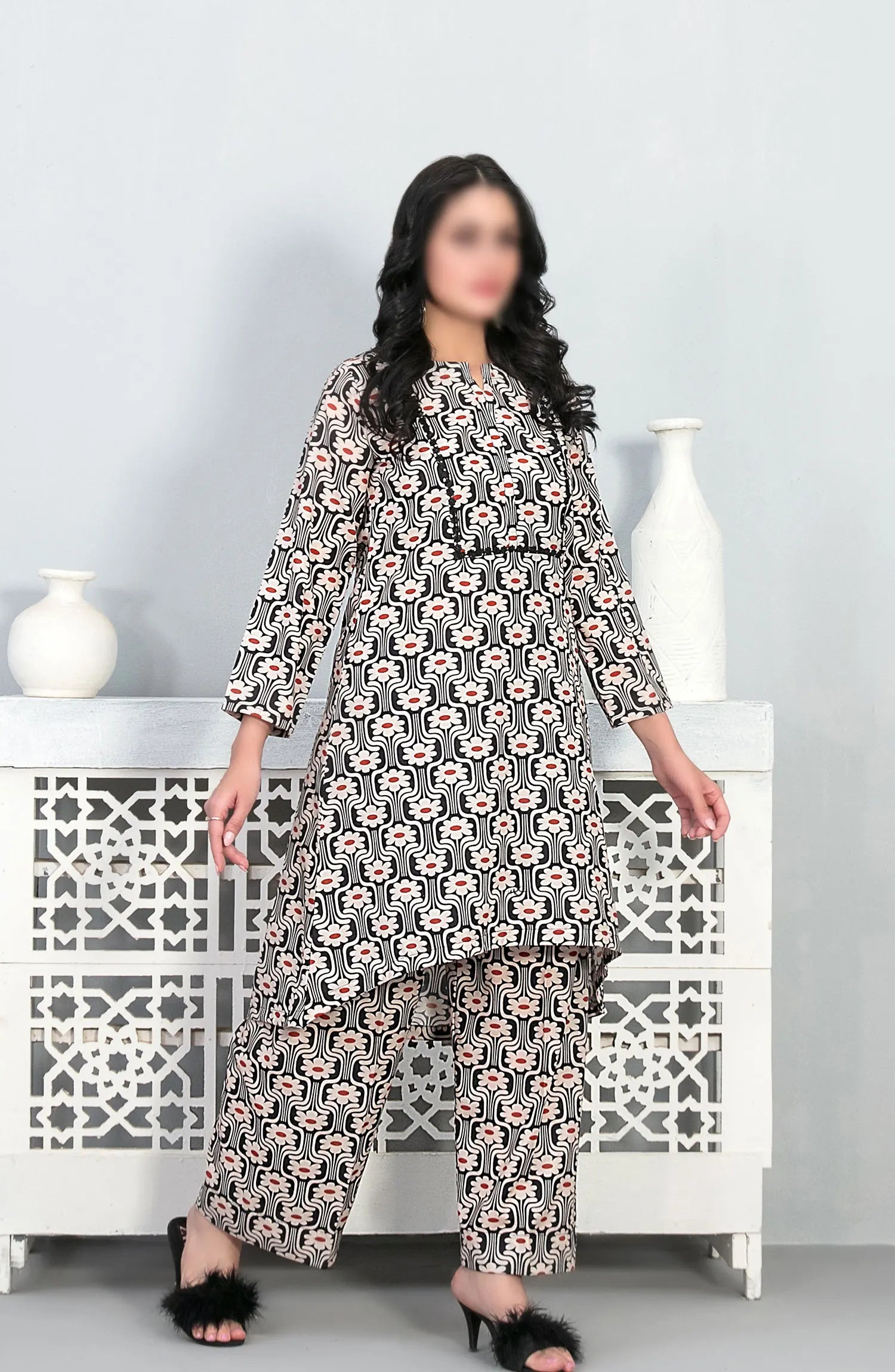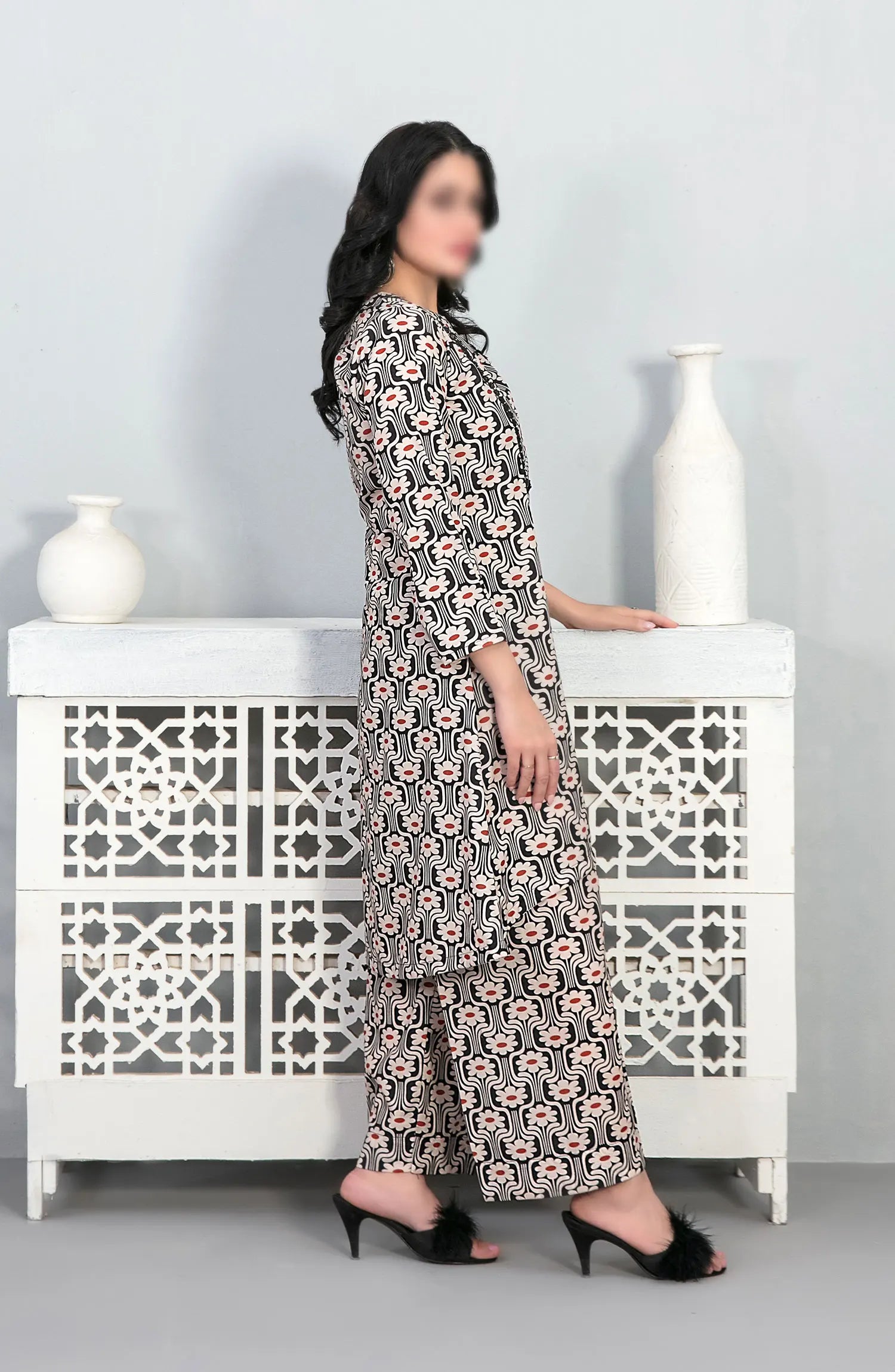 Perkha - Stitched Digital Printed Swiss 2pcs Collection 2024 has been styled in the image for photography and illustrative purposes.