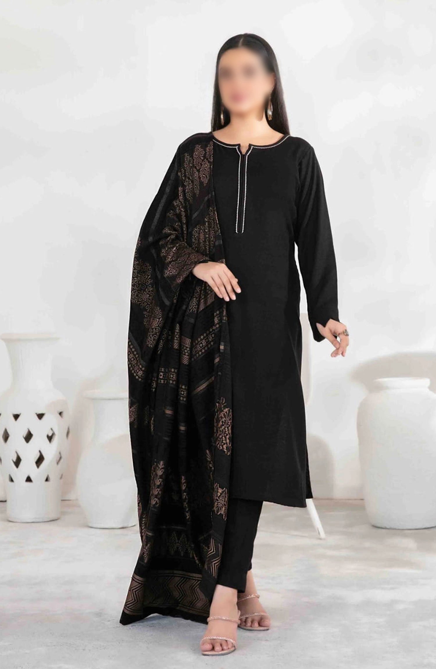 Bloom by Johra Premium Luxury Embroidered Dhanak Unstitched 3 Piece Suit - JW-595 - JH25BLOM - Black - Winter Collection