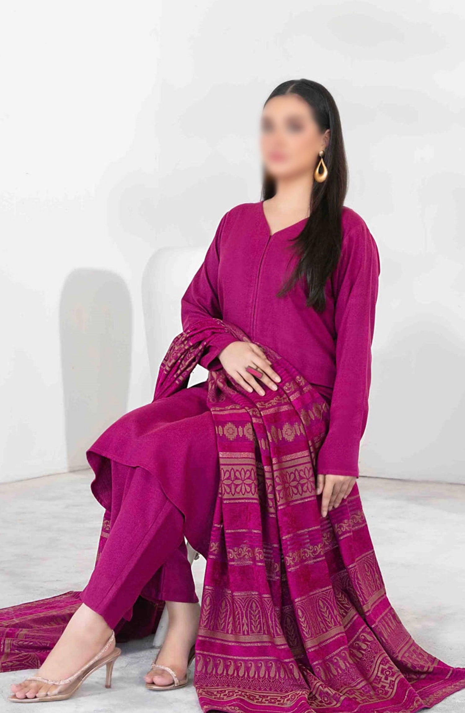Bloom by Johra Premium Luxury Embroidered Dhanak Unstitched 3 Piece Suit - JW-598 - JH25BLOM - Purple - Winter Collection