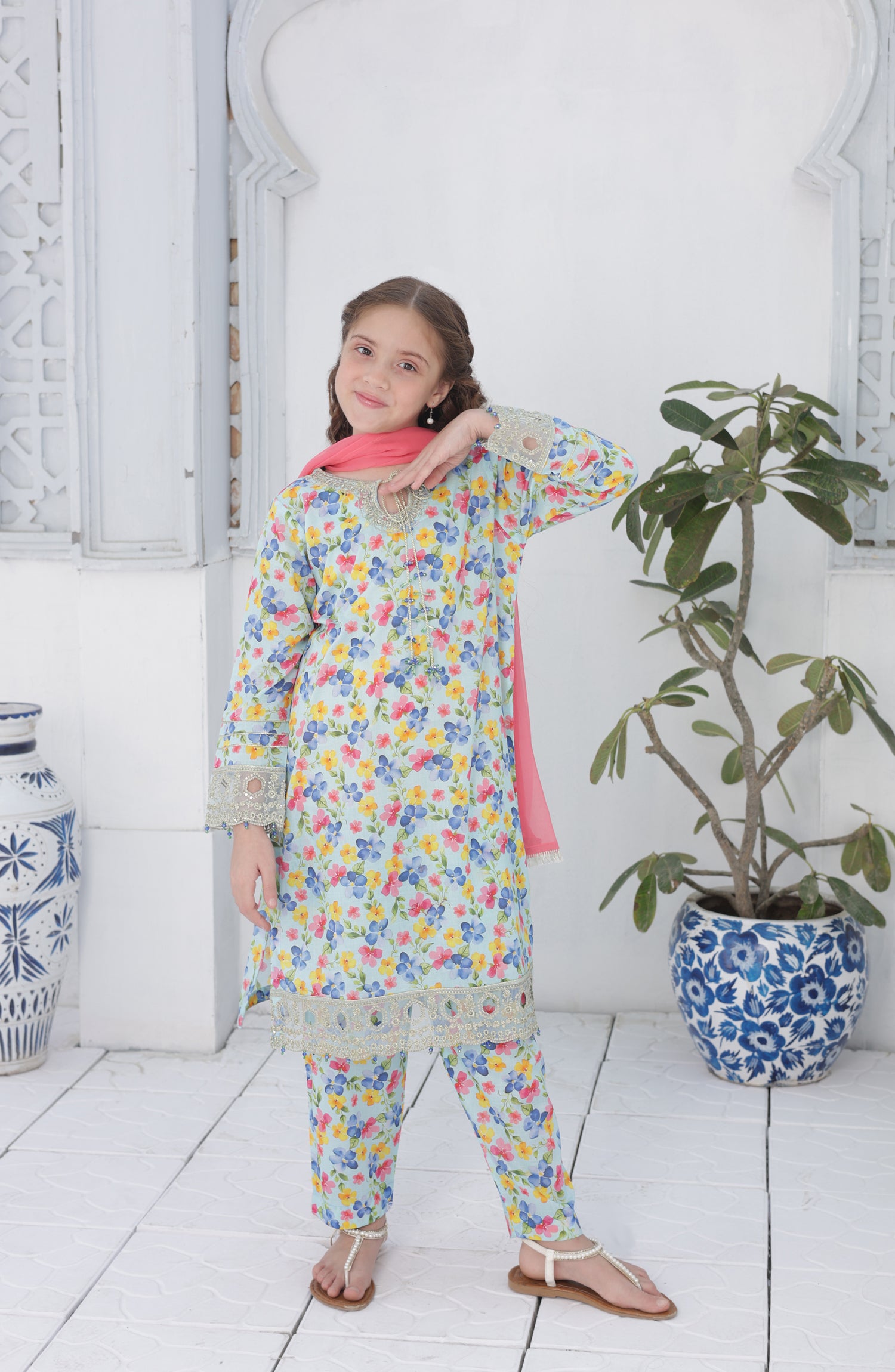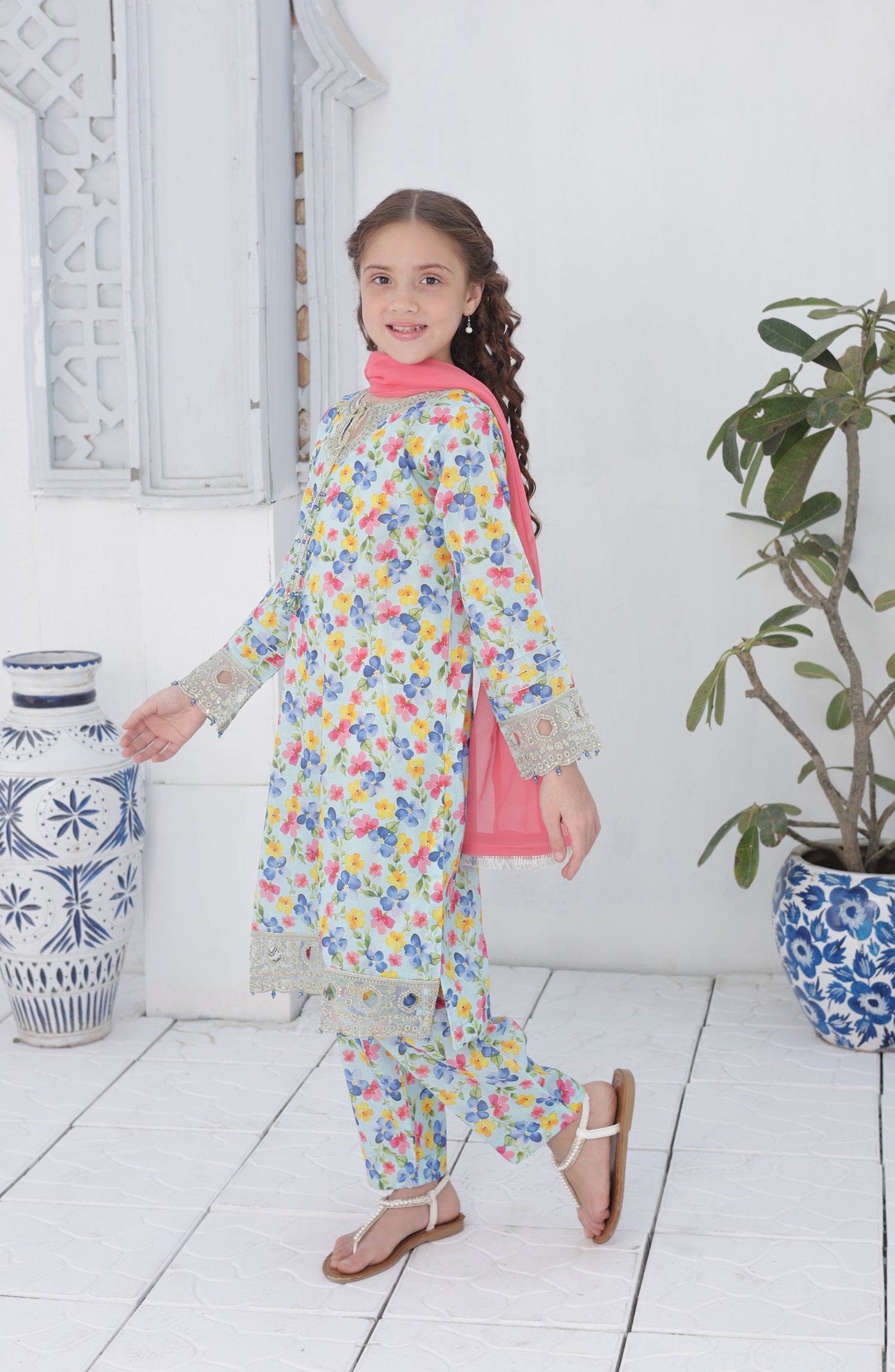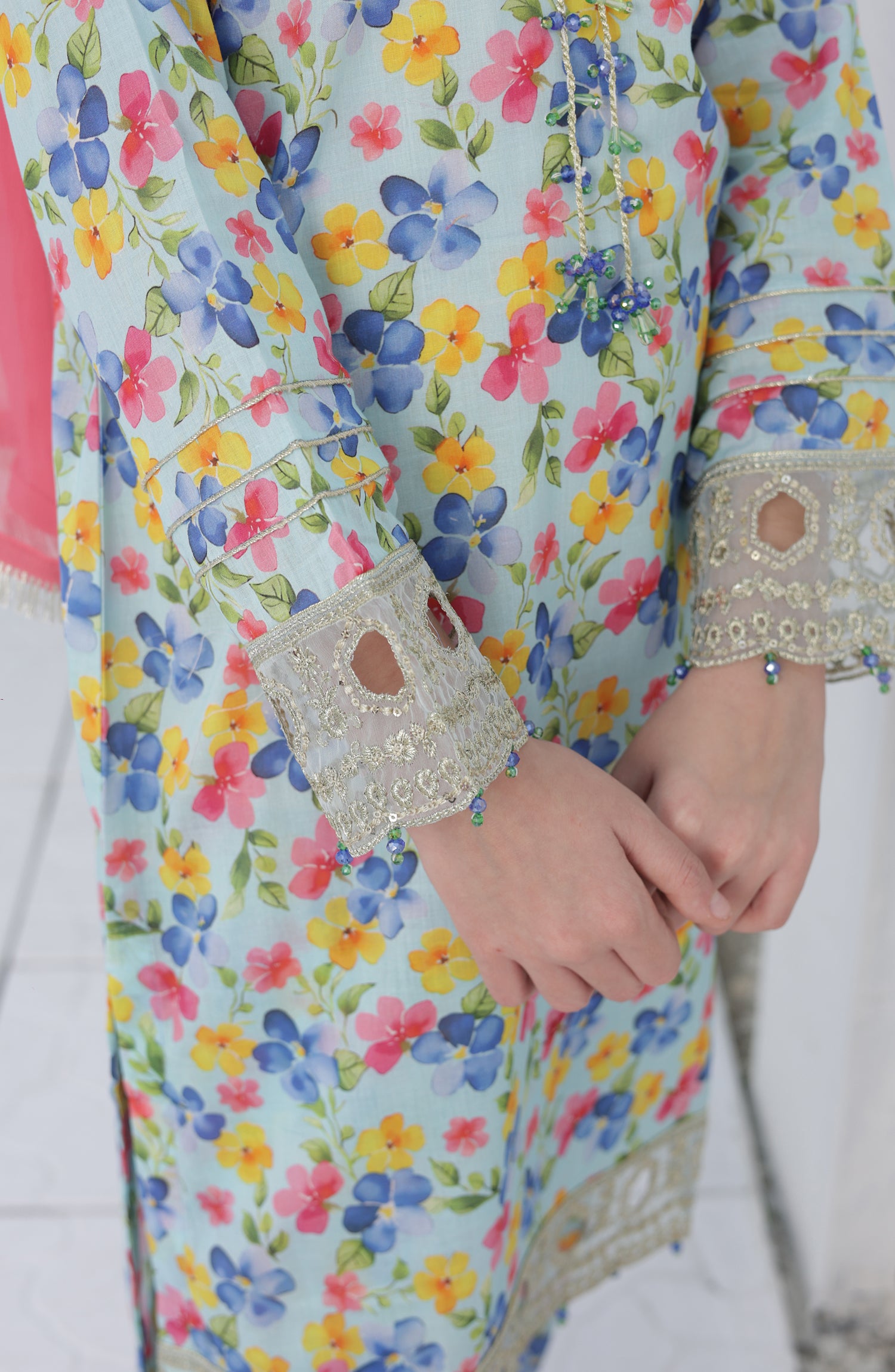 Embroidered & Embellished Printed Lawn Co-ords with Chiffon Dupatta