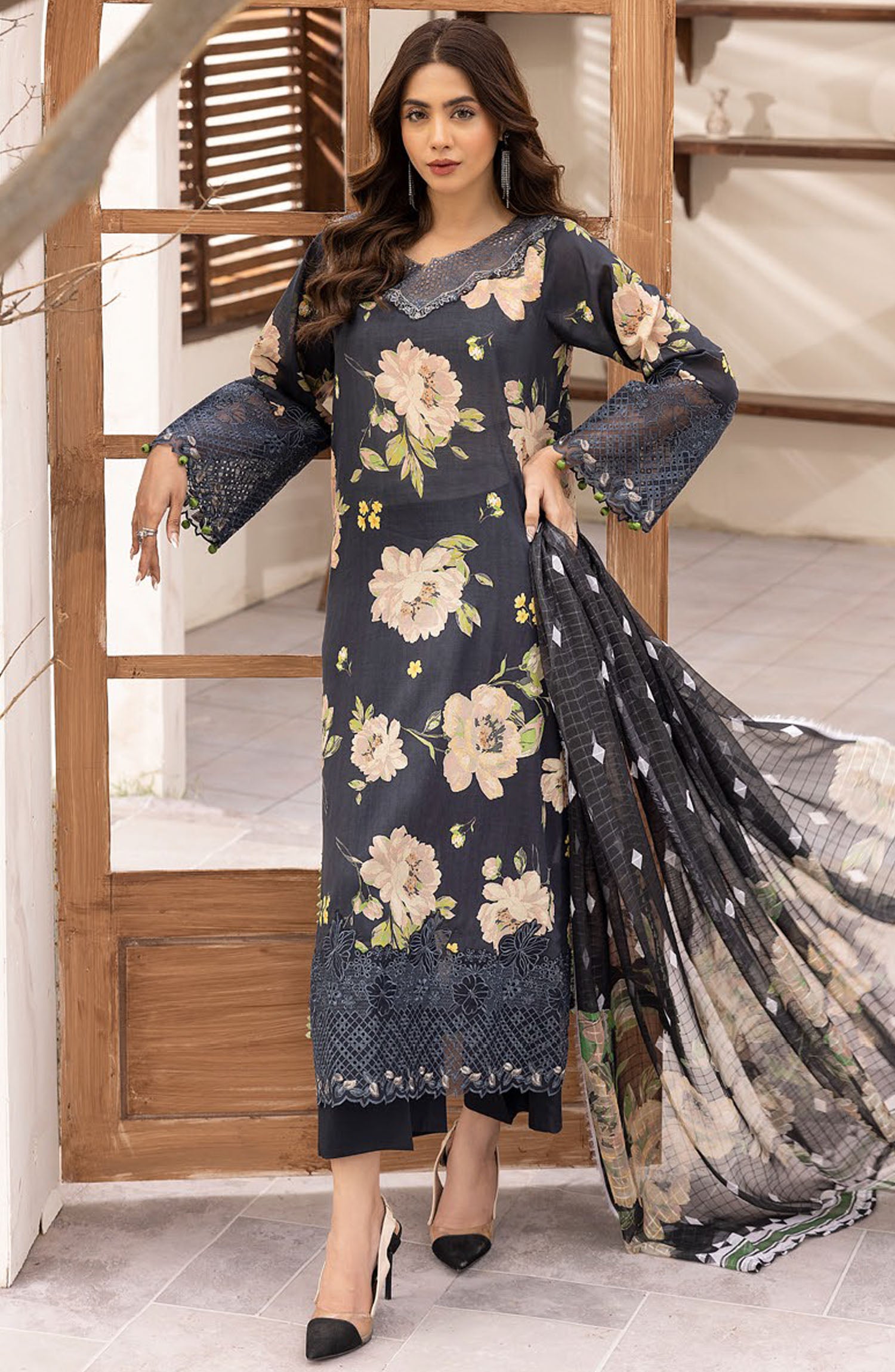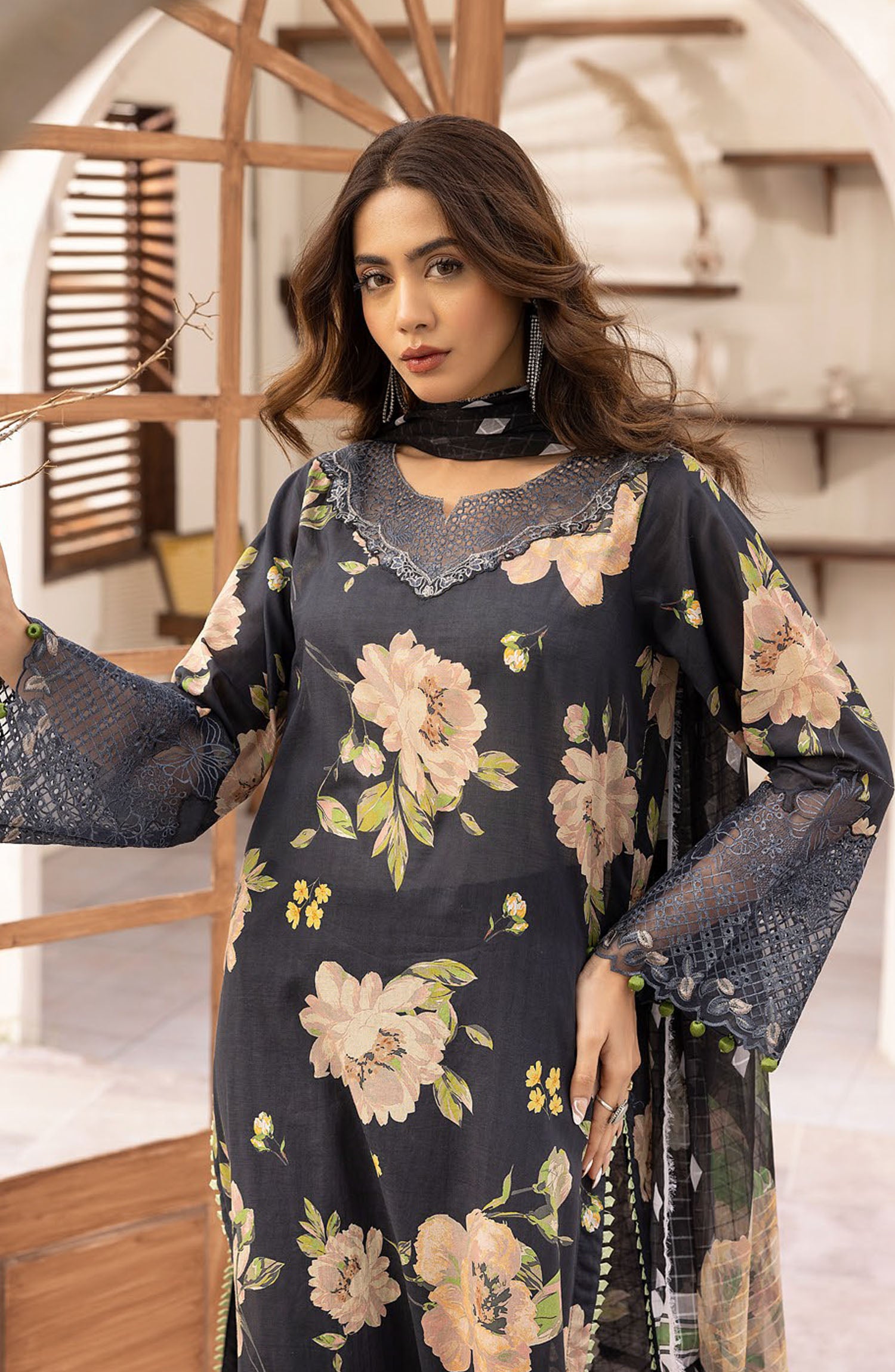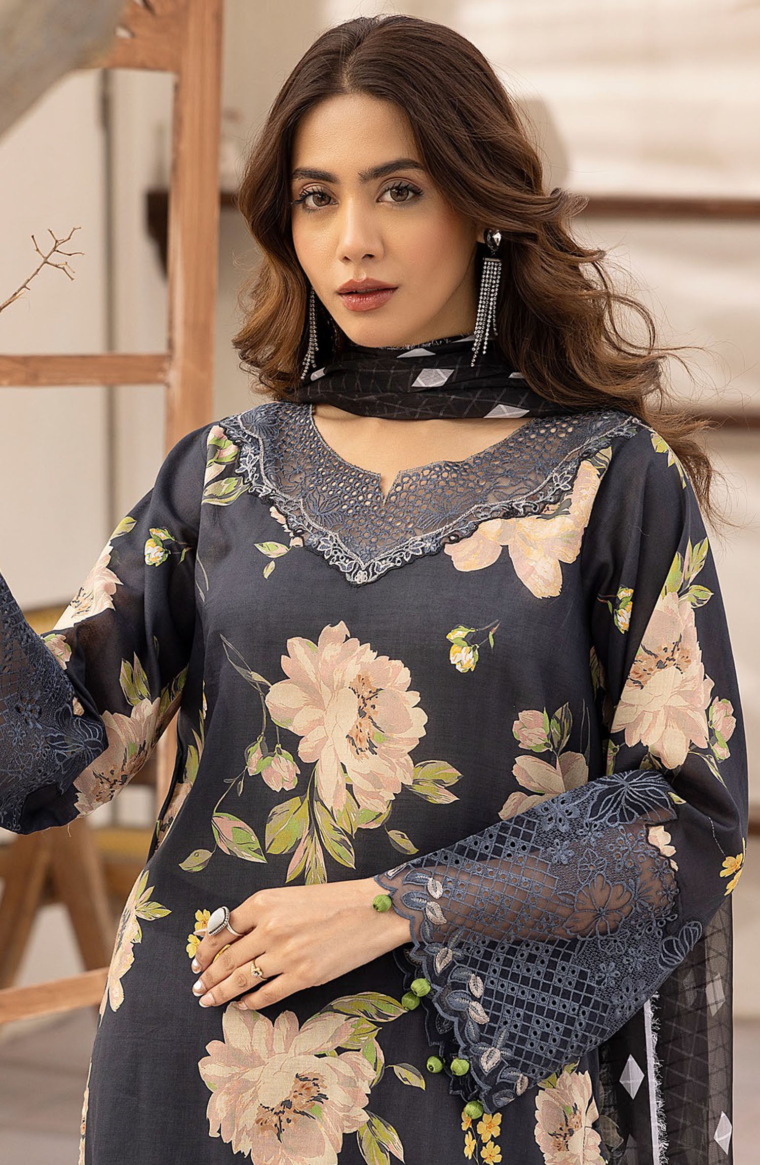 Home Phoolnagar by NUR Embroidered Lawn Unstitched 3 Piece Suit - NP-02 - NUR25PN - Black - Summer Collection