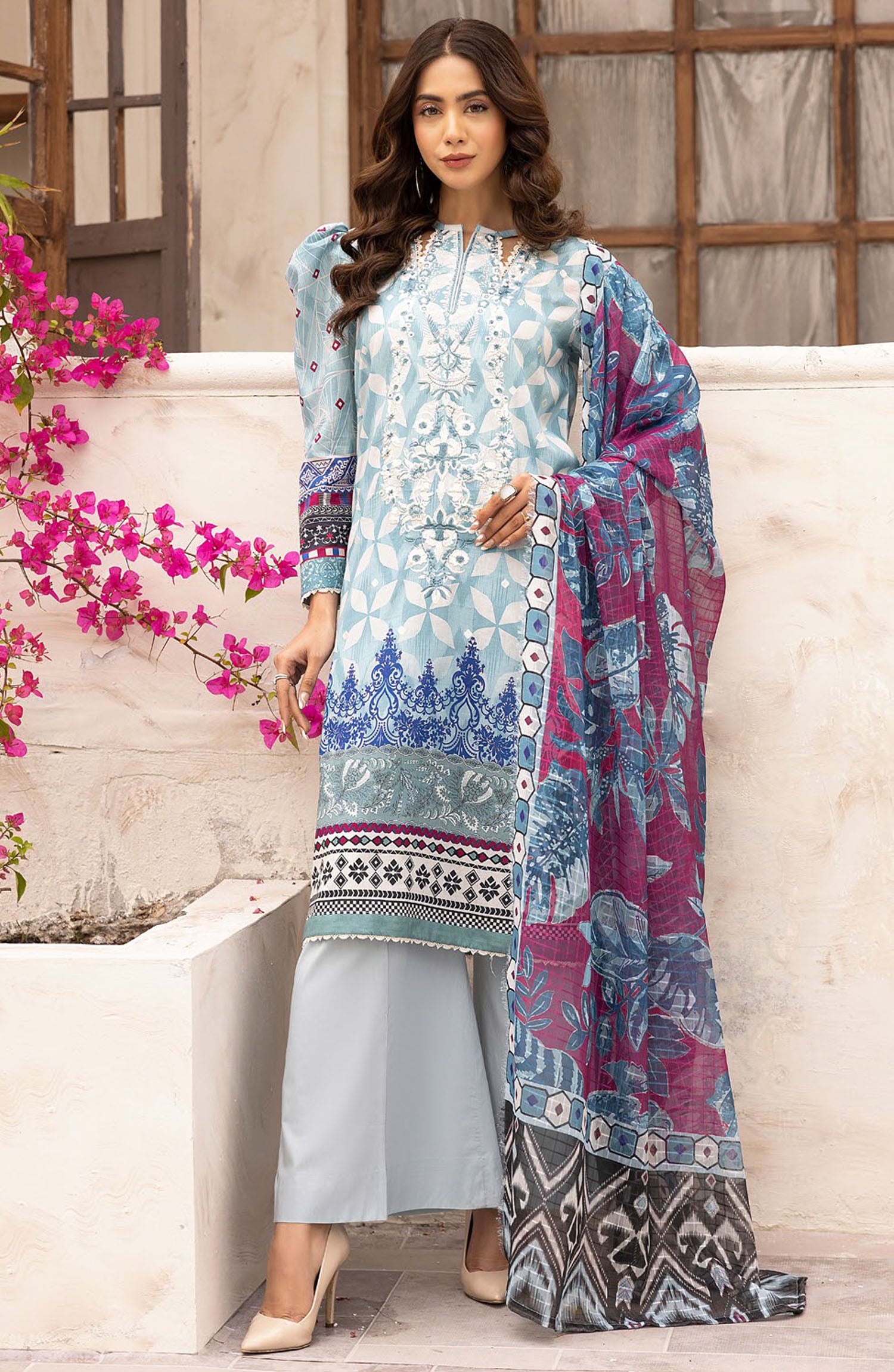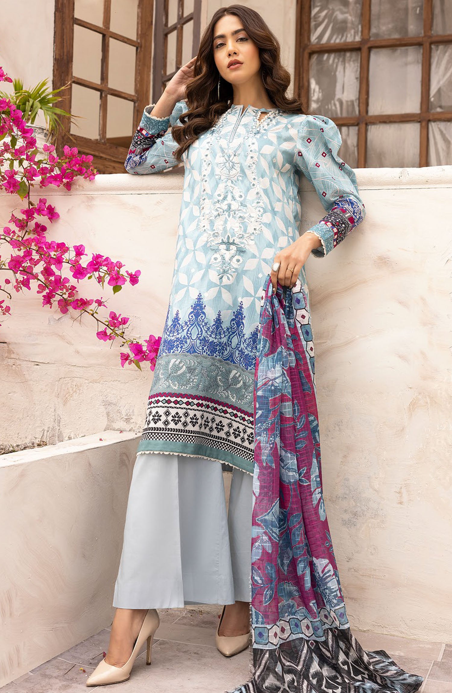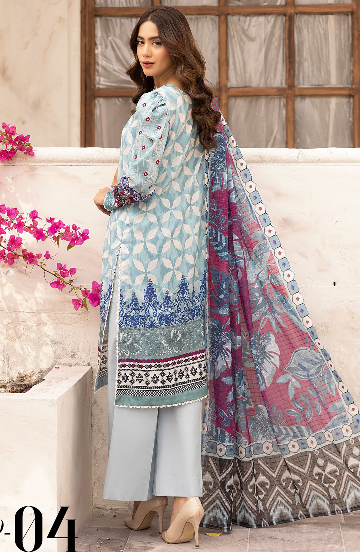 Lamisah by Lavish Premium Afsana Embroidered Chiffon Unstitched 3 Piece Suit - D-04 Mint Whisper - LP25AFS - Blue - Luxury Collection