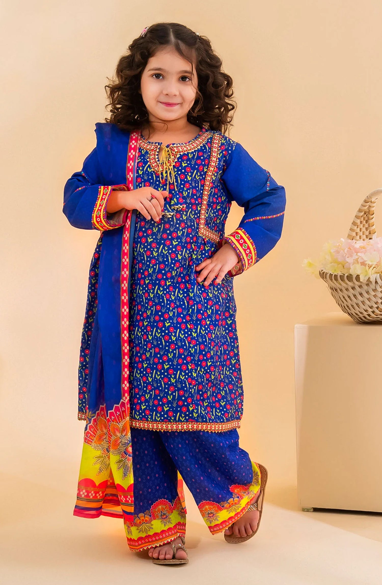 Home Poly Lawn Digital Printed 3 Pc Suit OCH26ES INDP-63 Blue