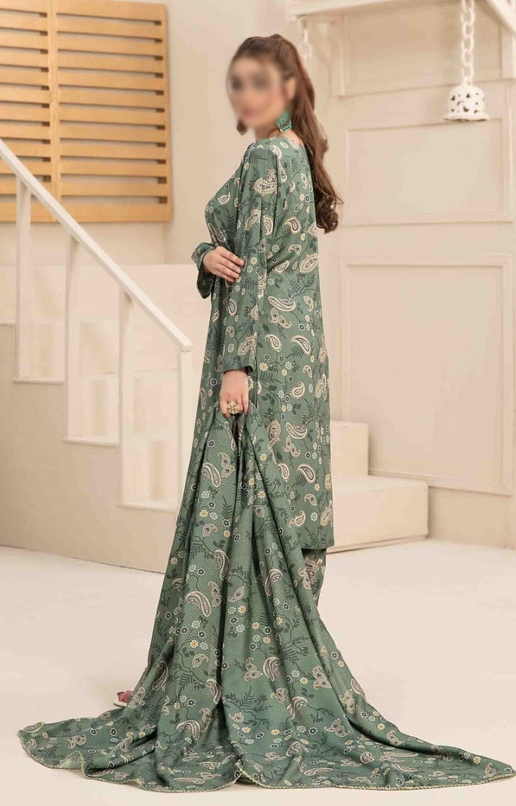 The standard style comes as a long-sleeved kameez with dupatta and trouser/shalwar.