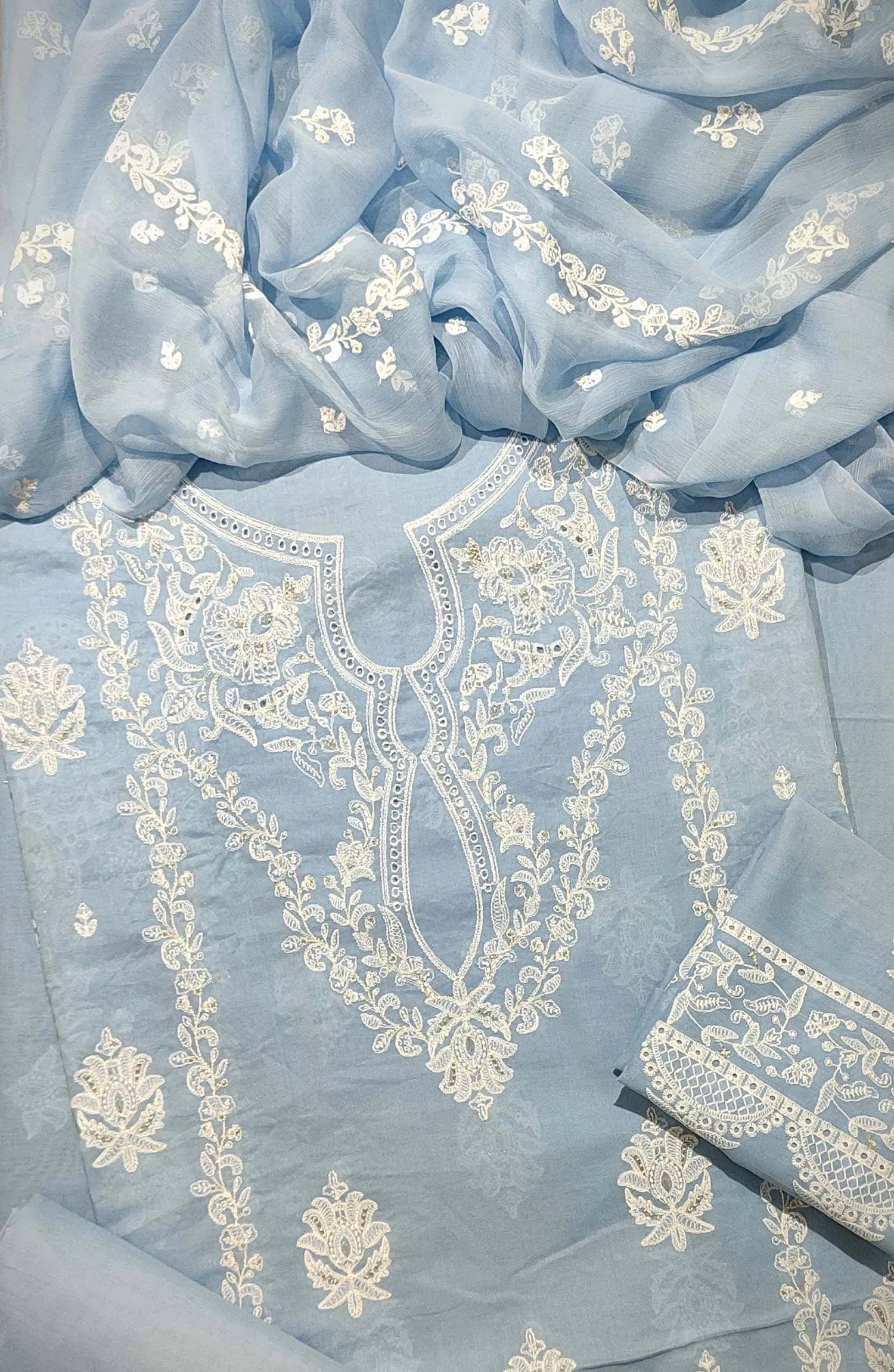 3 Piece | All Categories Women | Amna Khadija | Premium Chic N Kari Embroidered Swiss Voile Collection | Shop by Color Sky Blue | Shop by Season Summer Wear | Shop by Style Unstitched | Swiss | Unstitched | Unstitched Collections | Unstitched Designer Wear | Unstitched Summer Wear | Women