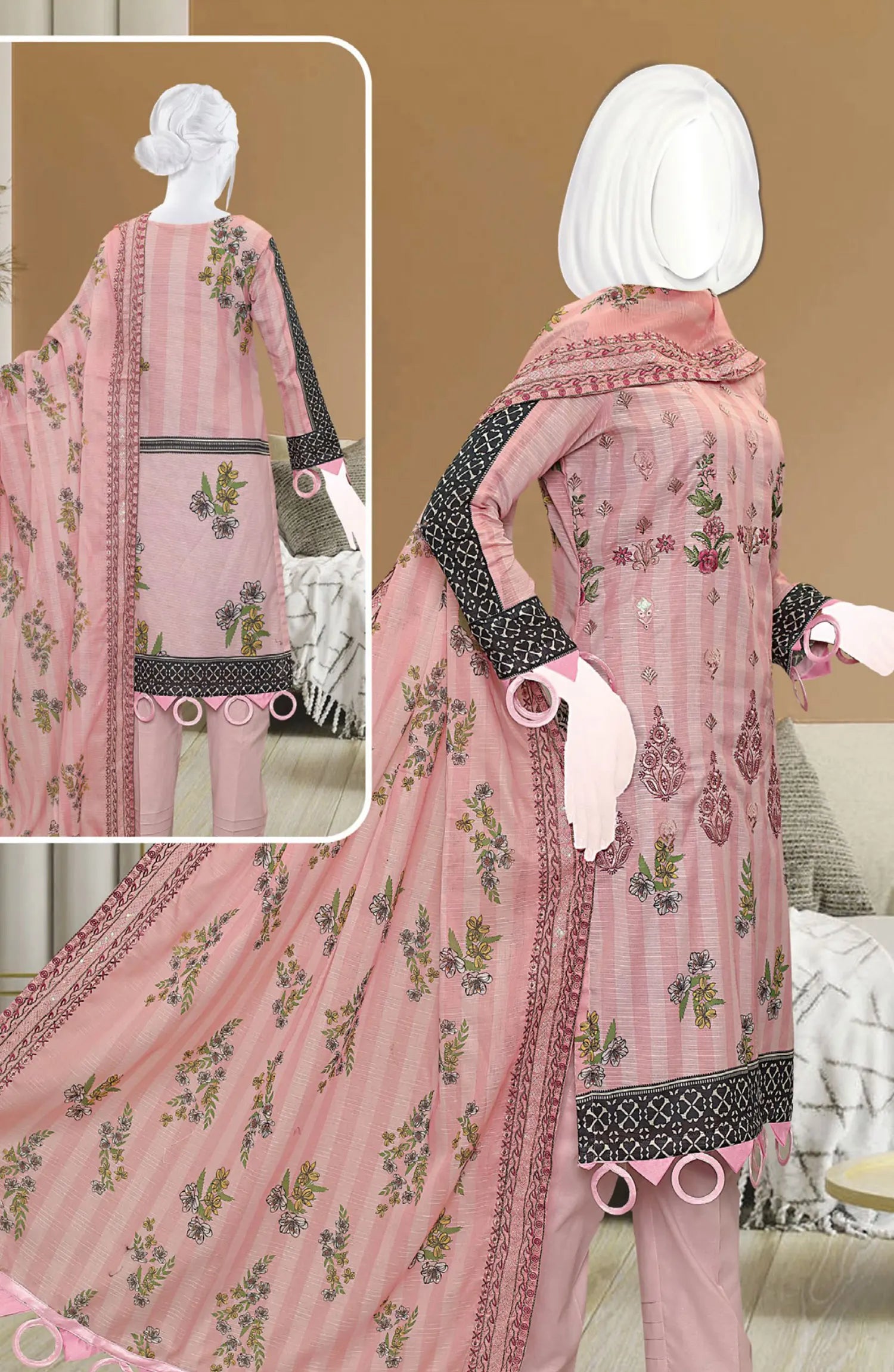 HZ Textile Digital Printed Linen Slub Unstitched 3 Piece Suit - LSD-305 - HZ25LNSL - Pink - Winter Collection