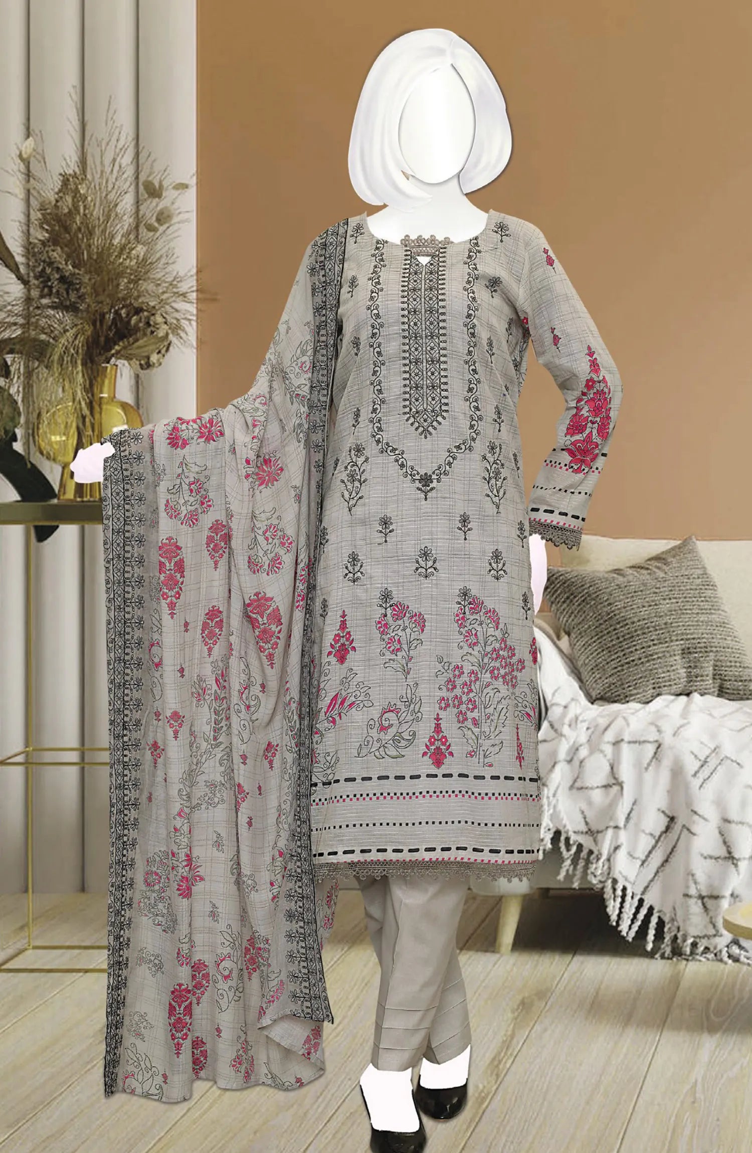 HZ Textile Digital Printed Linen Slub Unstitched 3 Piece Suit - LSD-305 - HZ25LNSL - Pink - Winter Collection
