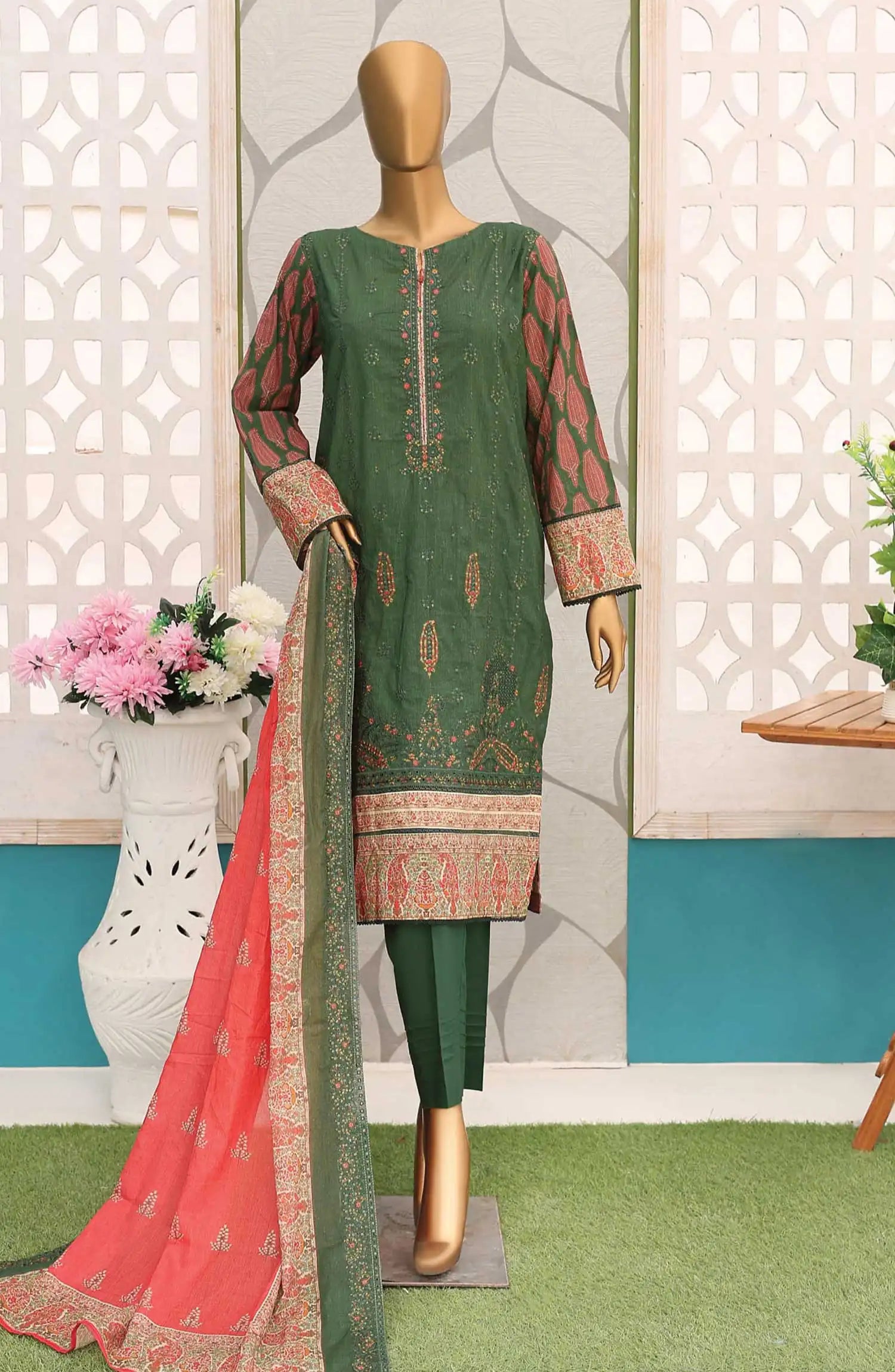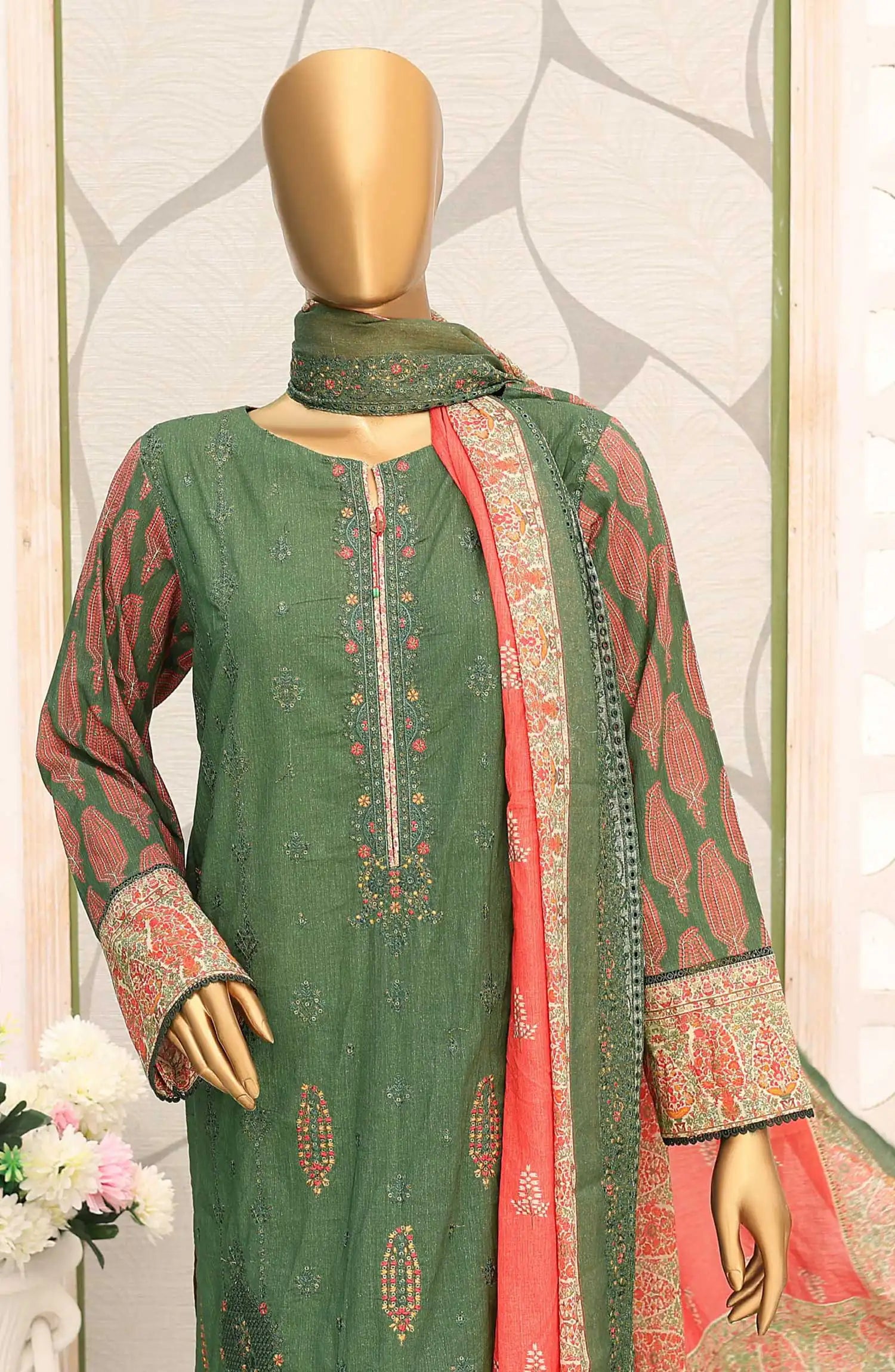 Home Premium Embroidered Cotton Lawn Shirt With Embroidered Cutwork Lawn Dupatta Vol 02 - PEC 138