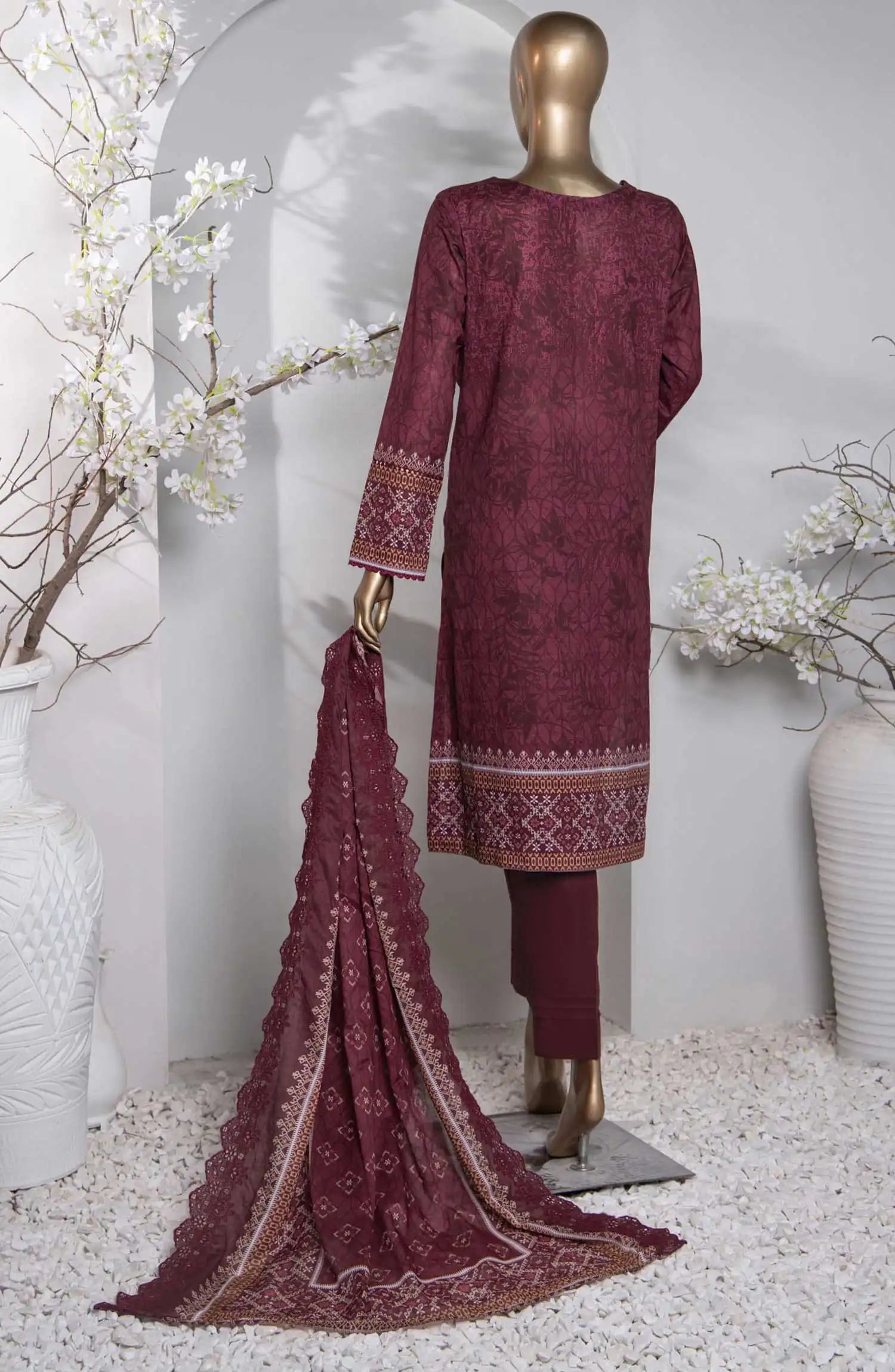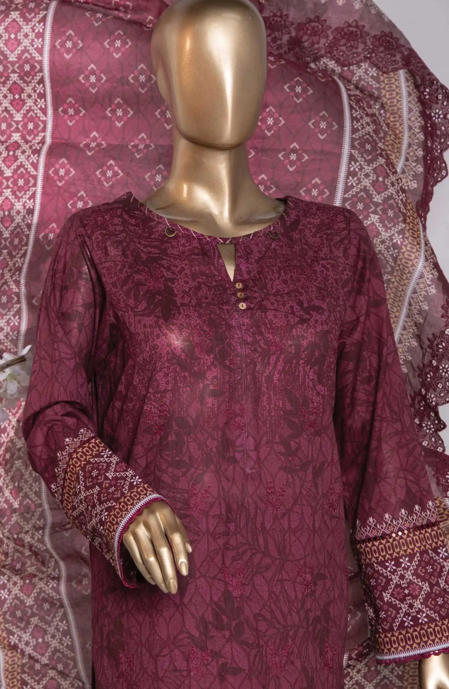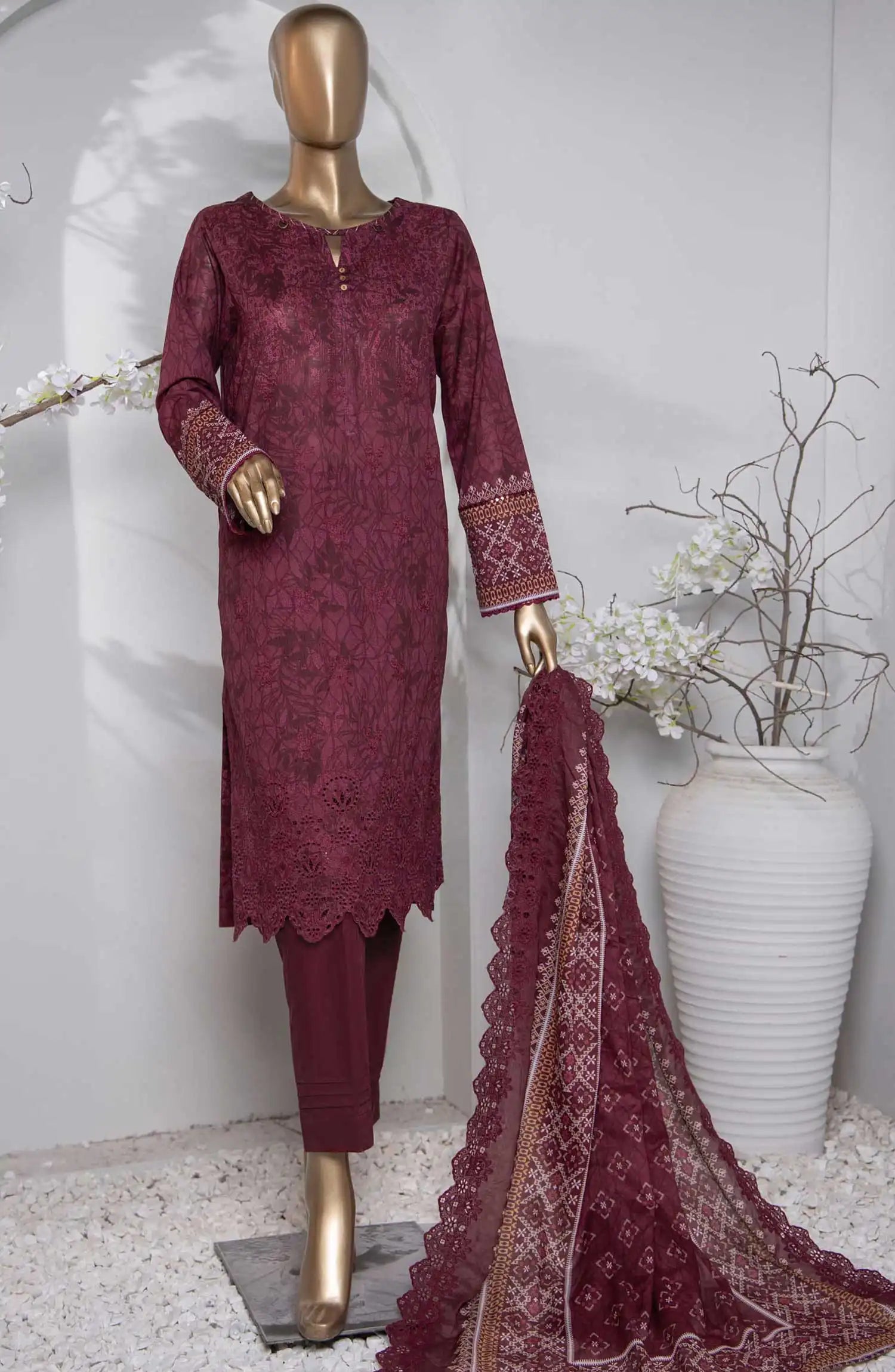 Home Premium Embroidered Cotton Lawn Shirt With Embroidered Cutwork Lawn Dupatta Vol 02 - PEC 768