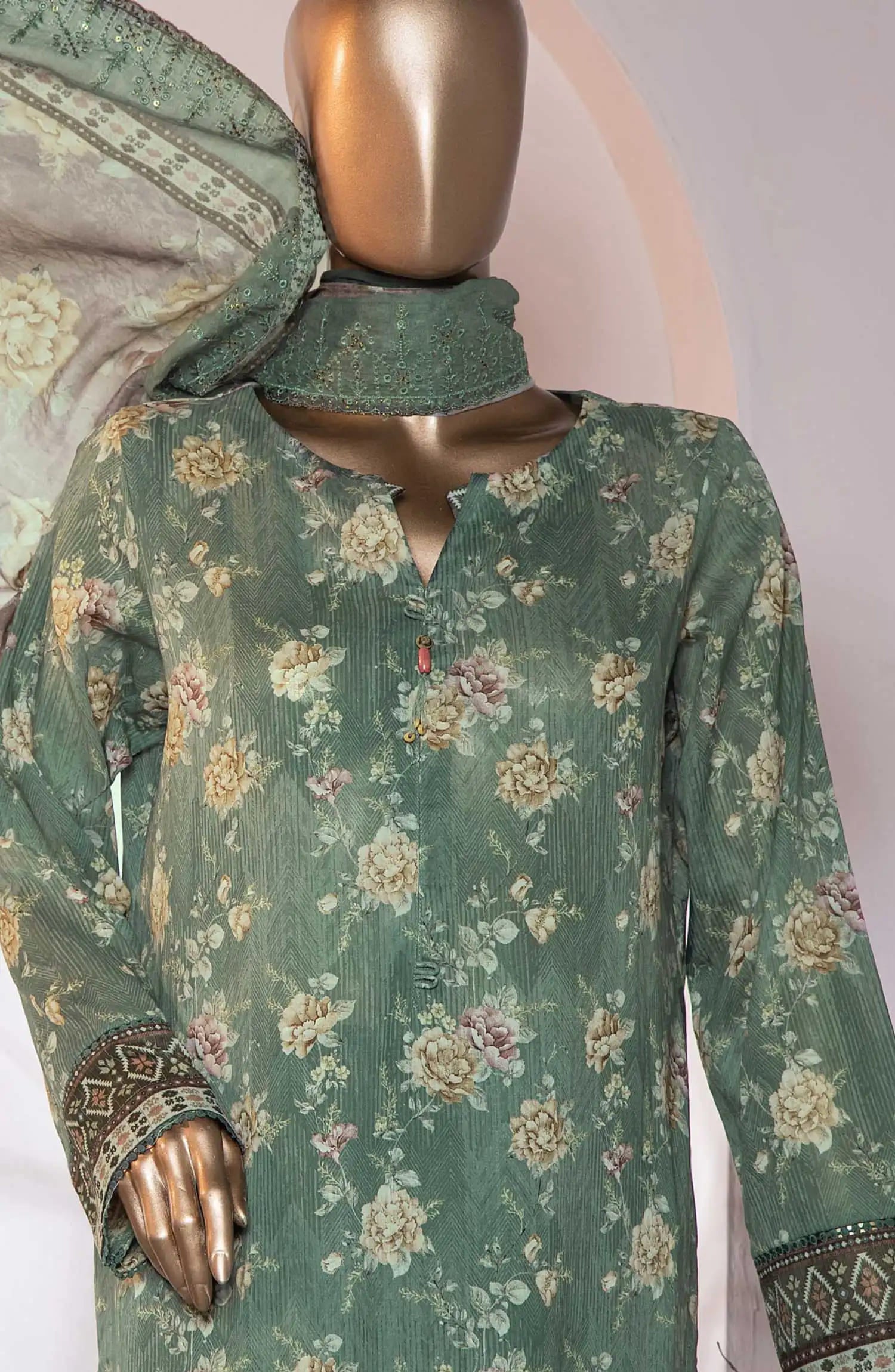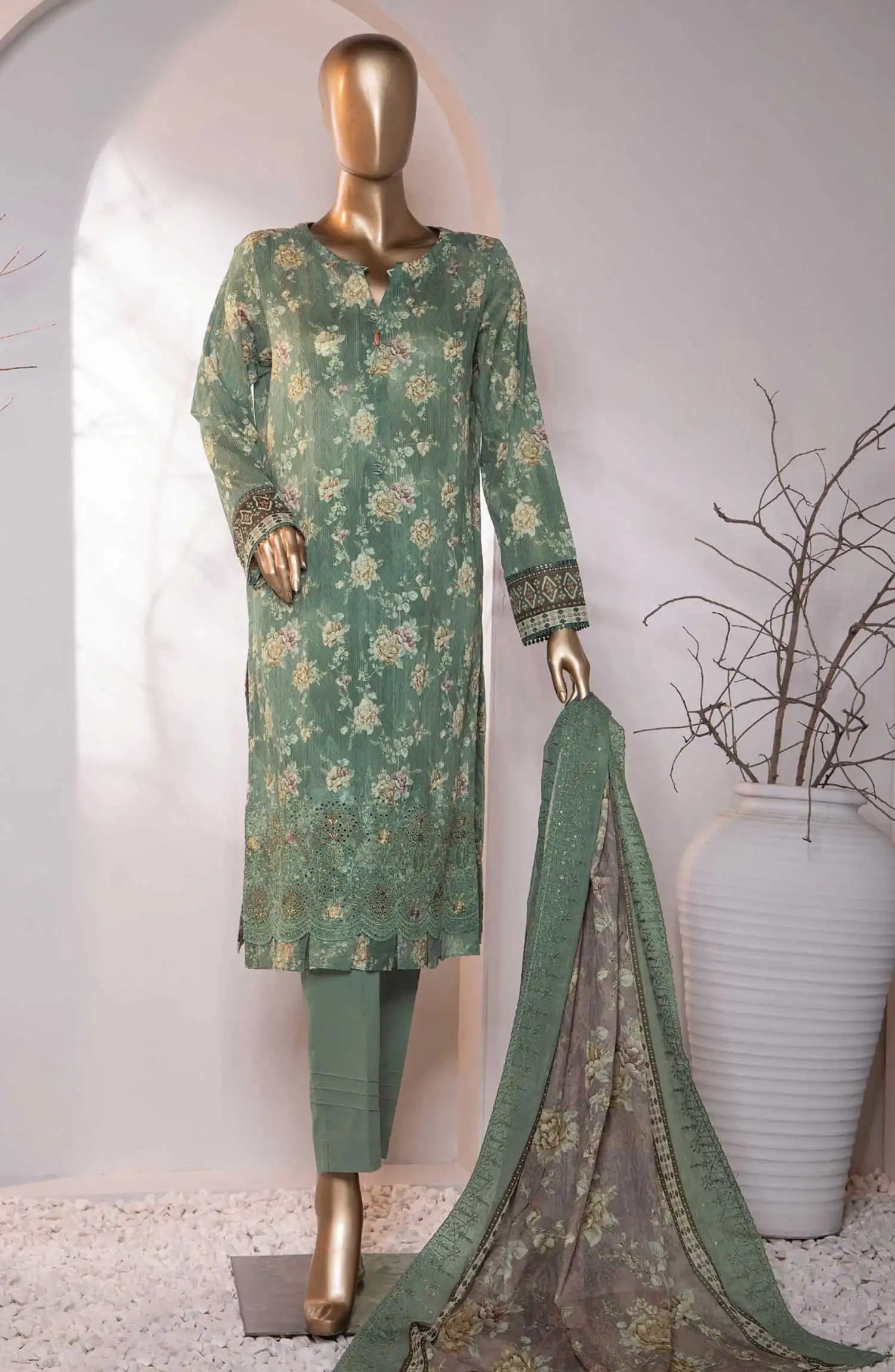 Premium Embroidered Cotton Lawn Shirt With Embroidered Cutwork Lawn Dupatta Vol 02 has been styled in the image for photography and illustrative purposes.