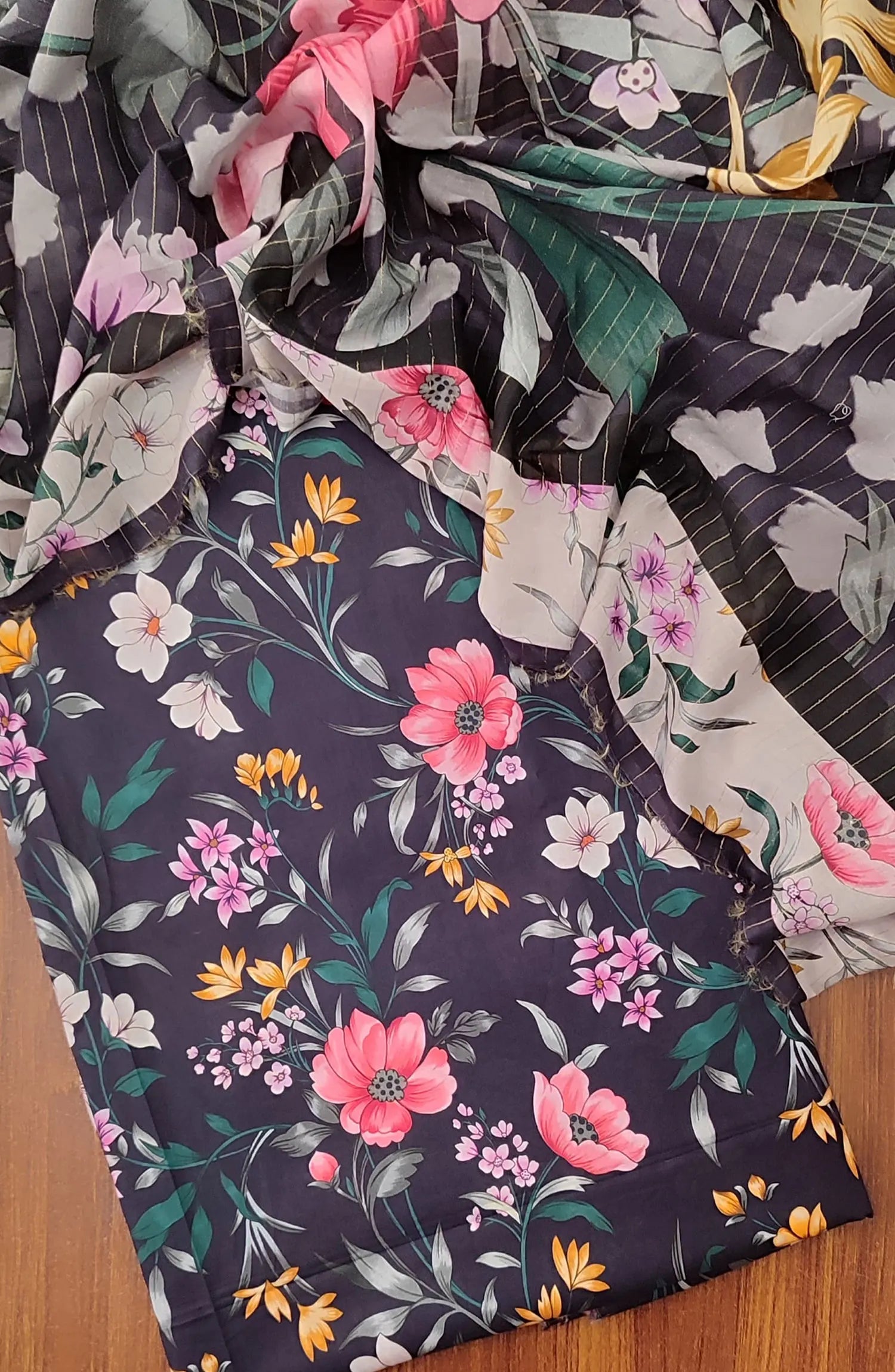 Premium Unstitch Printed Co-Ords 3Pcs With Zari Lawn Dupatta has been styled in the image for photography and illustrative purposes.