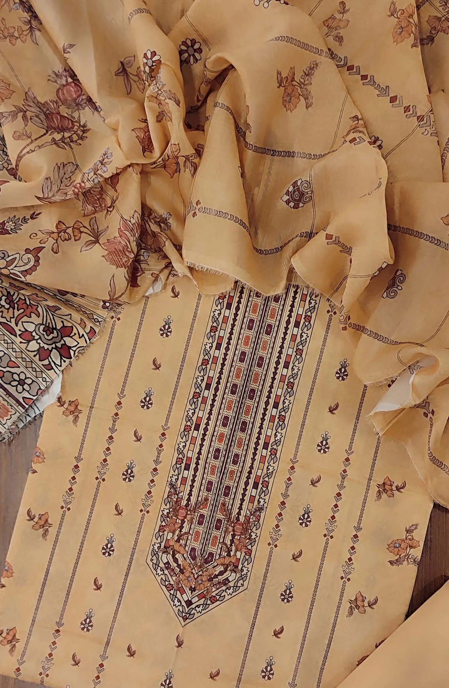 PREMIUM UNSTITCH PRINTED LAWN 3PEC WITH TILLA DUPATTA COLLECTION has been styled in the image for photography and illustrative purposes.