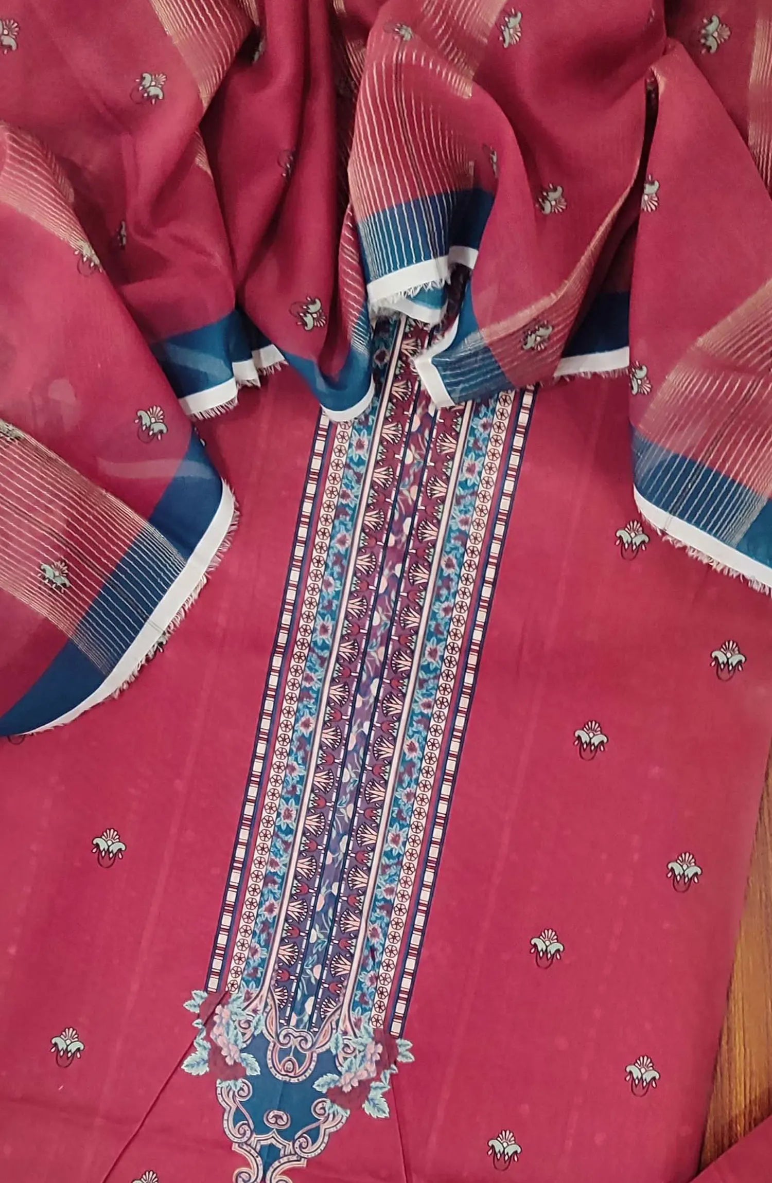 PREMIUM UNSTITCH PRINTED LAWN 3PEC WITH TILLA  DUPATTA COLLECTION - D 06