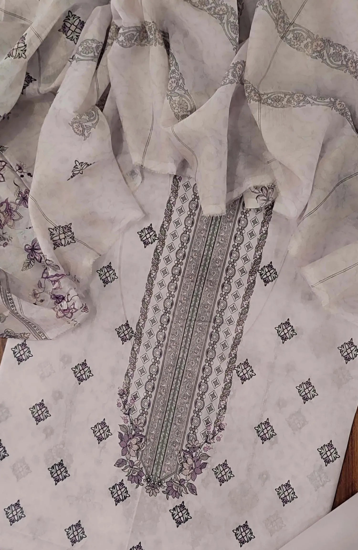 PREMIUM UNSTITCH PRINTED LAWN 3PEC WITH TILLA  DUPATTA COLLECTION - D 10