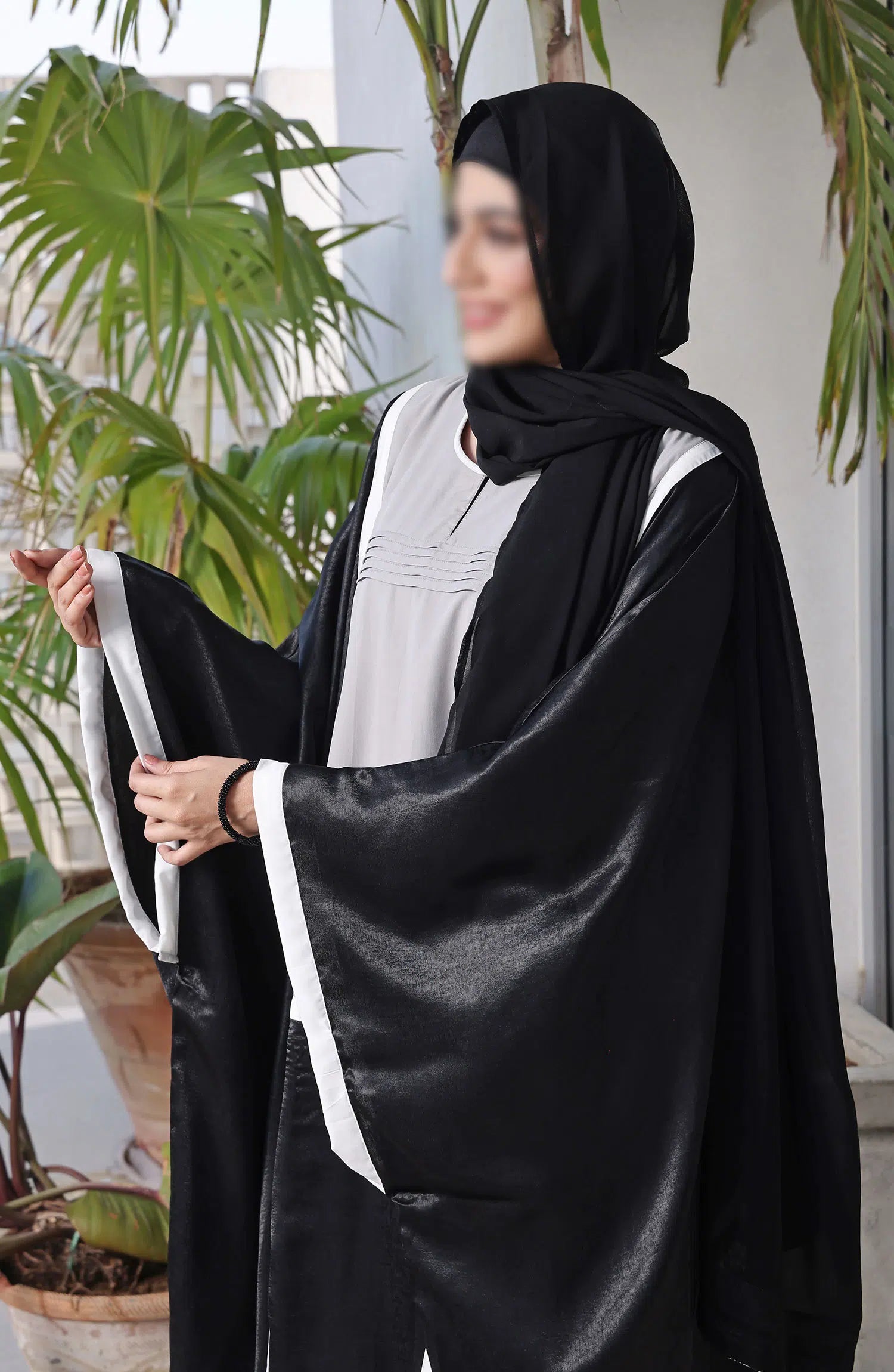 Our beautiful style abaya is best for all day everyday wear which is soft and breathable premium Dubai fabric elastic sleeves, along with belt which is sober and elegant design which is best to carry and comes along with chiffon Sheila