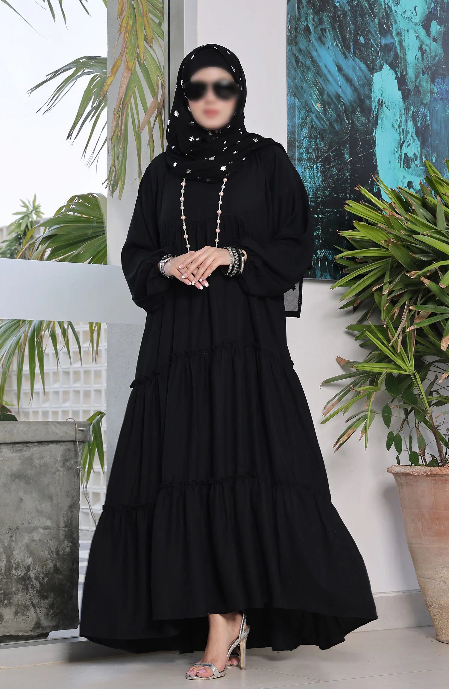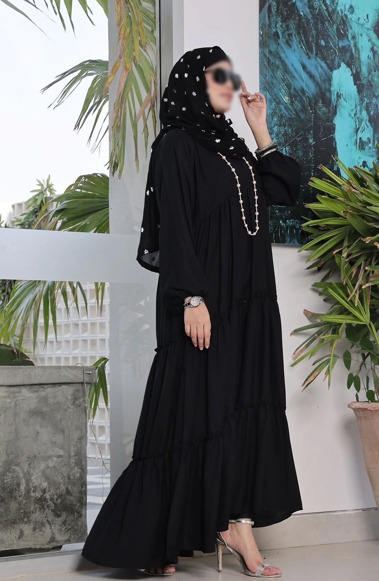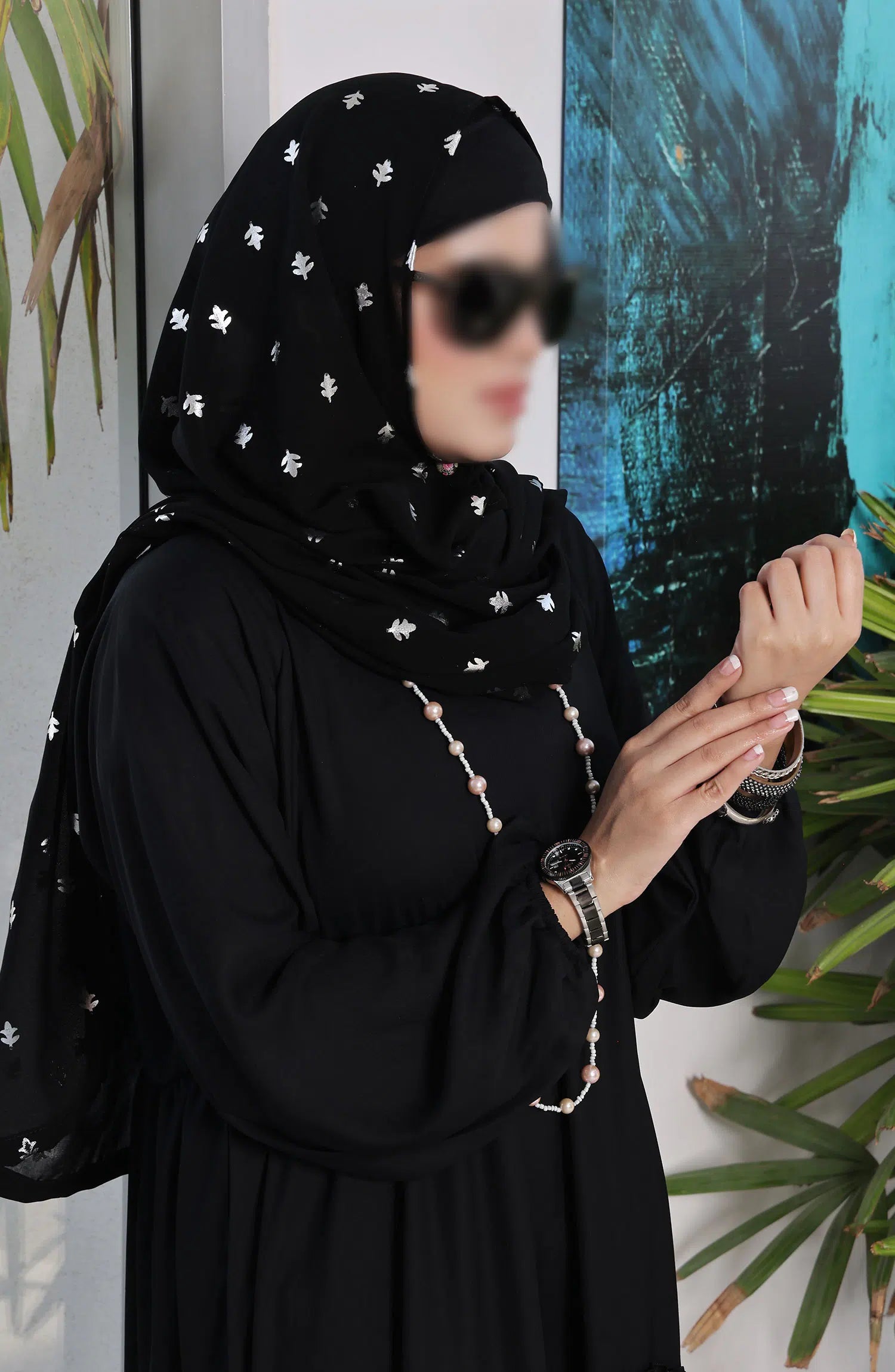 Our beautiful flaired maxi abaya is best for all day everyday wear which is soft and breathable premium fabric with elastic sleeves, which is best to carry and comes along with Digital Printed Chiffon Sheila