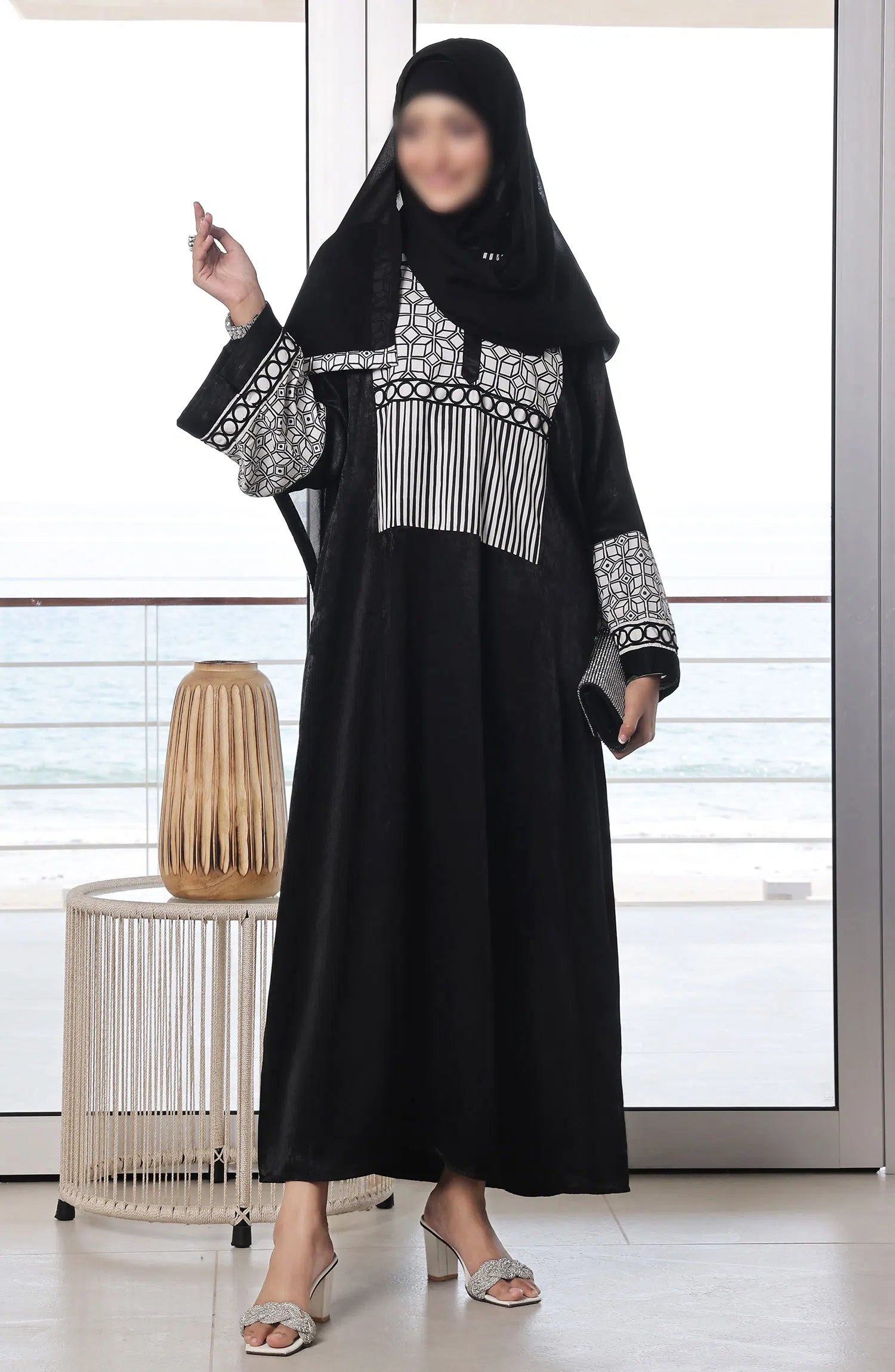 Our beautiful maxi style abaya is best for all day everyday wear which is soft and breathable premium Dubai fabric with embroidery patch on front and on sleeves which is sober and elegant design which is best to carry and comes along with Chiffon Sheila