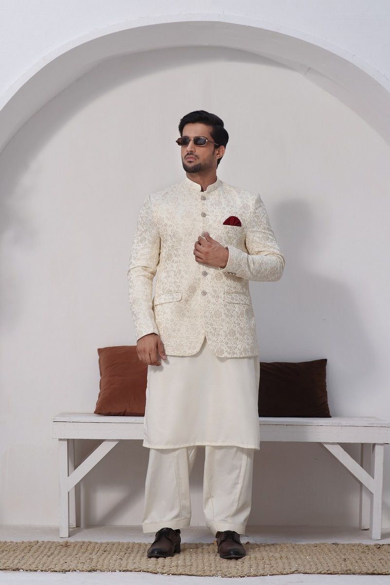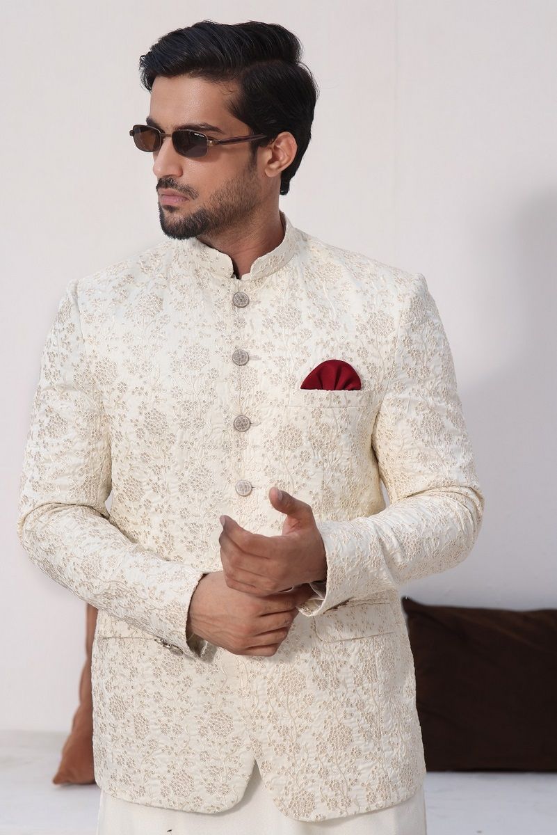 Mens Designer Prince Coat on Maesuri Fabric with Chikan Embroidery