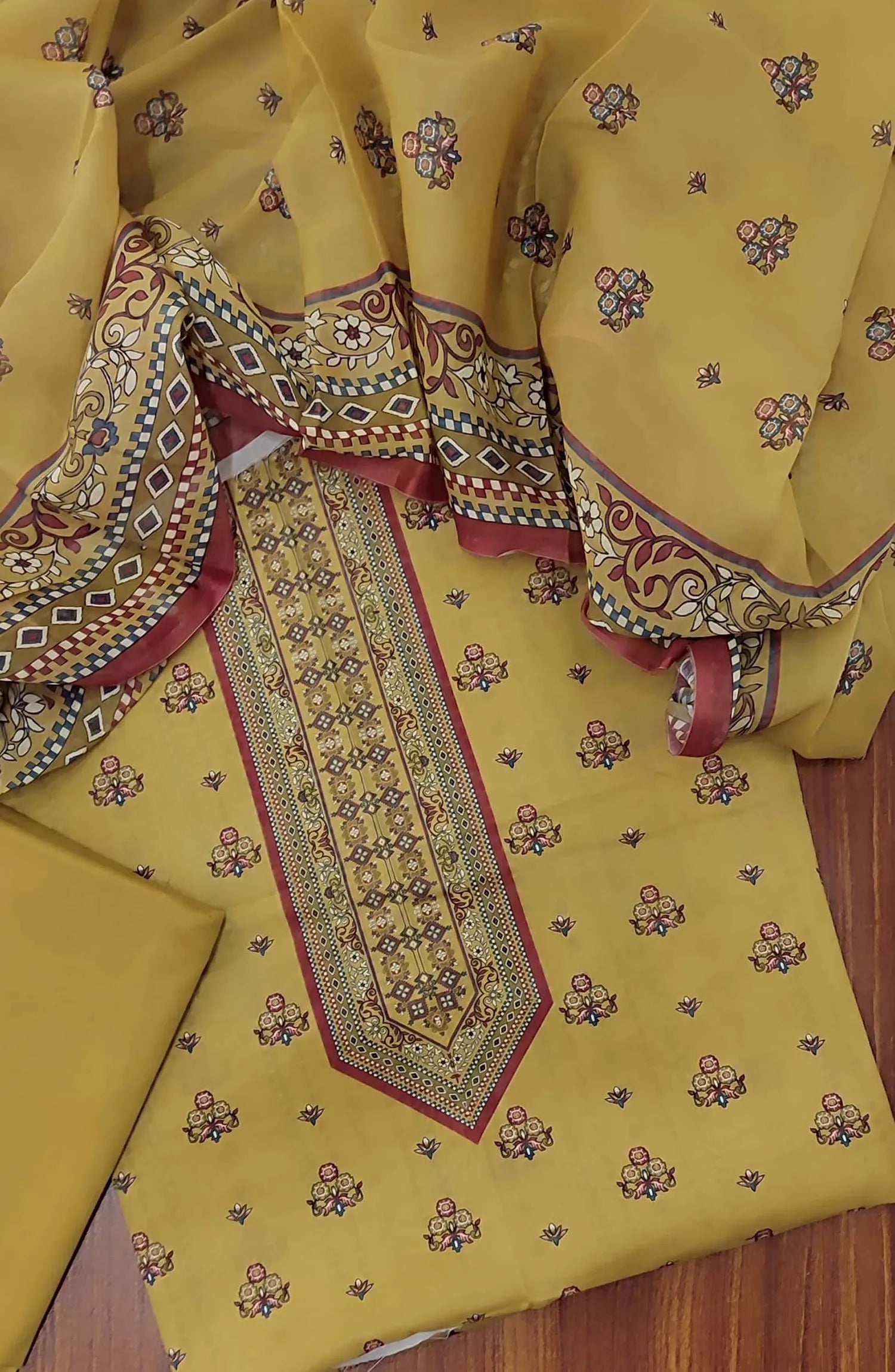 3 piece printed lawn suit with voile dupatta